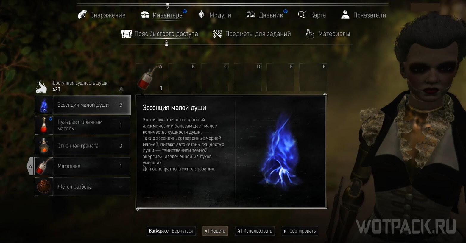 - Зелья, гранаты и др. в разделе «Пояс быстрого доступа».