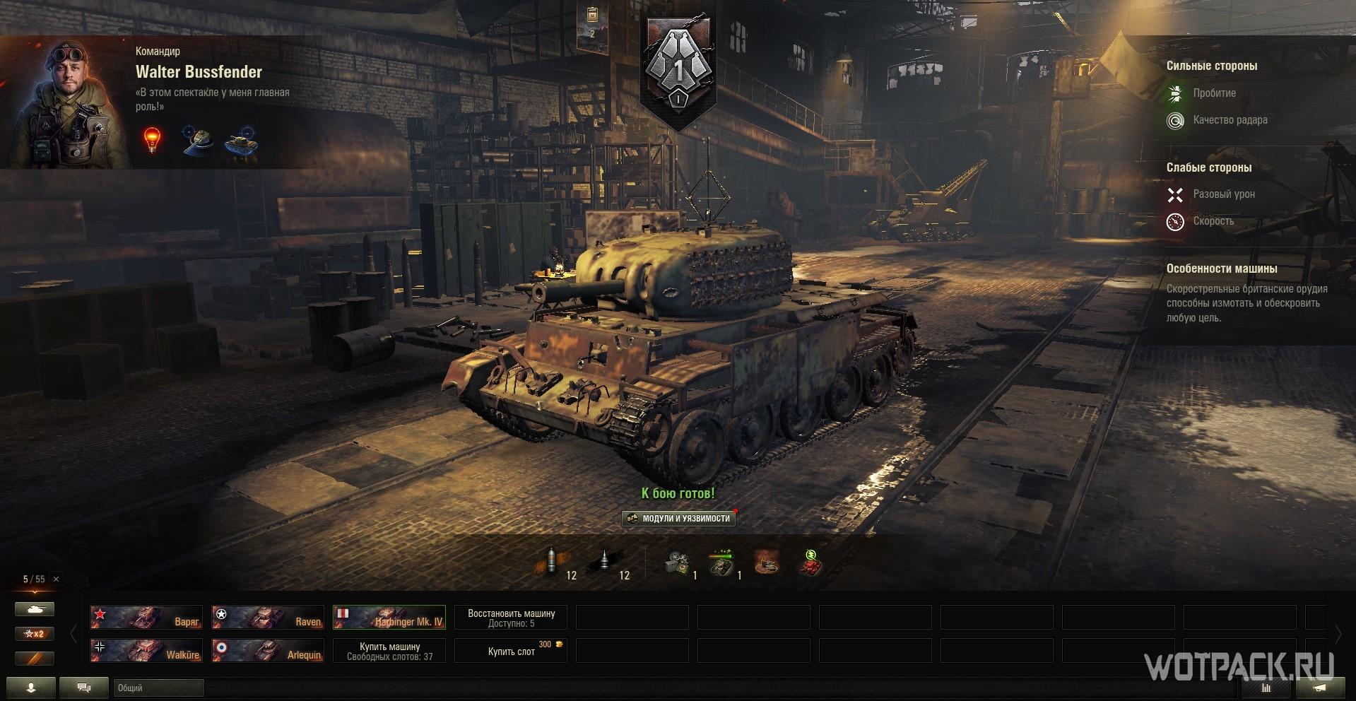По моему мнению лучшим танком для Стального Охотника является техника с бонусом к урону: британский Harbinger Mk. IV или американский Raven. В принципе, в ровных руках каждая машина будет хороша, но эти две мне нравятся за счет своих умений командиров и техники на повышение огневой мощи. Именно эти показатели позволяют эффективно обезвреживать противника, если прицельно стрелять по модулям, поэтому не поленитесь на досуге изучить уязвимые зоны каждой техники.