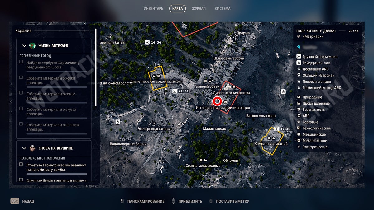 Здание находится в центре карты и называется Исследования и администрация. Вход с южной стороны и ведет напрямую в главный зал с лифтом. Из-за обилия ценного лута тут нередко происходят стычки с другими игроками, так что будьте аккуратны и остерегайтесь засады.