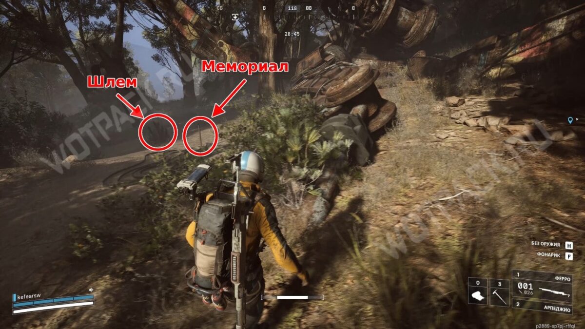 Доберитесь до обломков на Холмах Формикаи — это локация к востоку от свалки металлолома, в том же лесу. Здесь довольно густая растительность, да и сама зона находится на окраине, поэтому опасностей почти нет.
