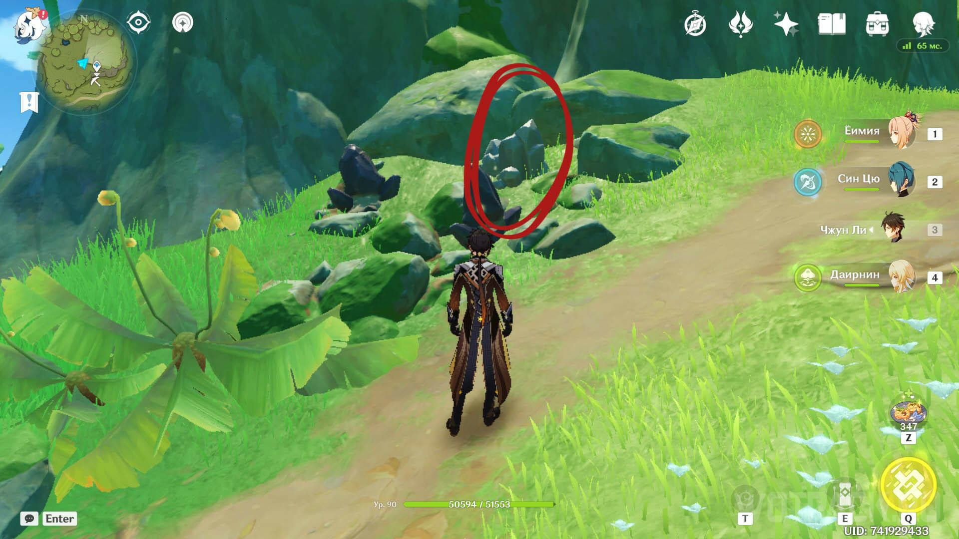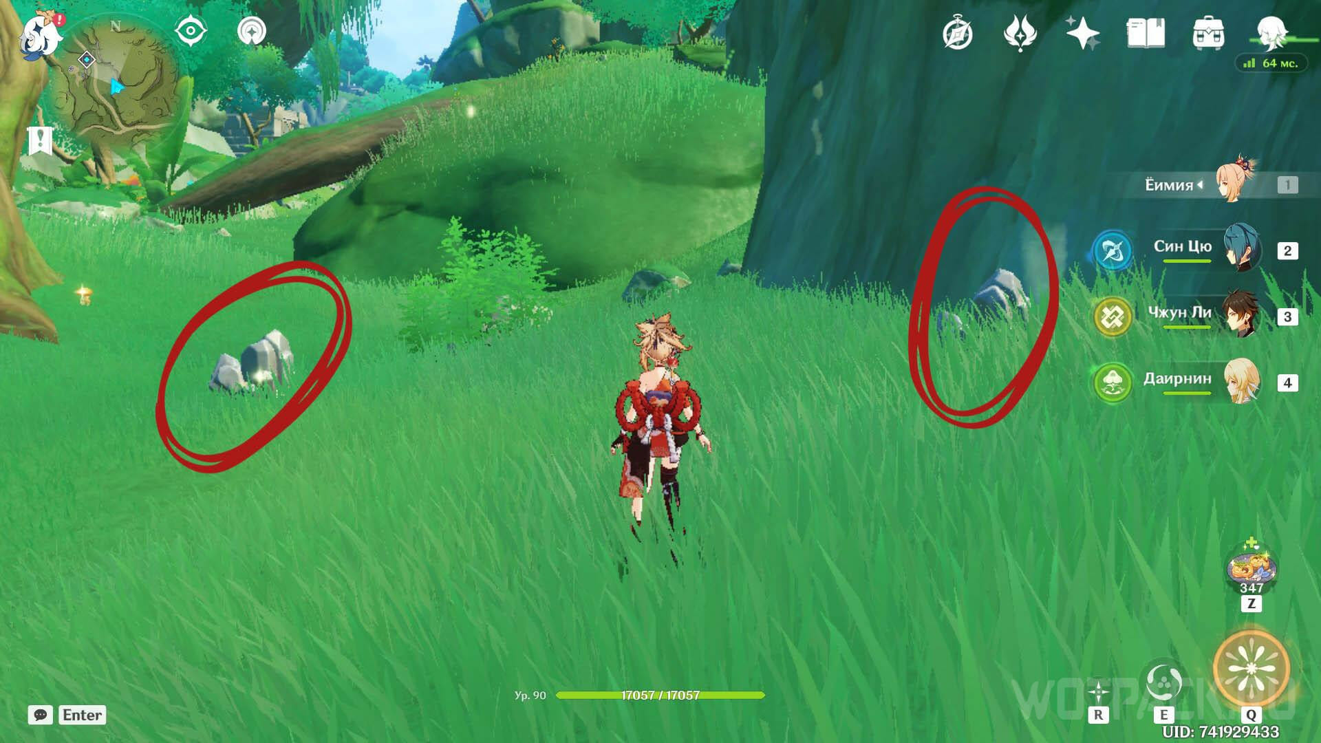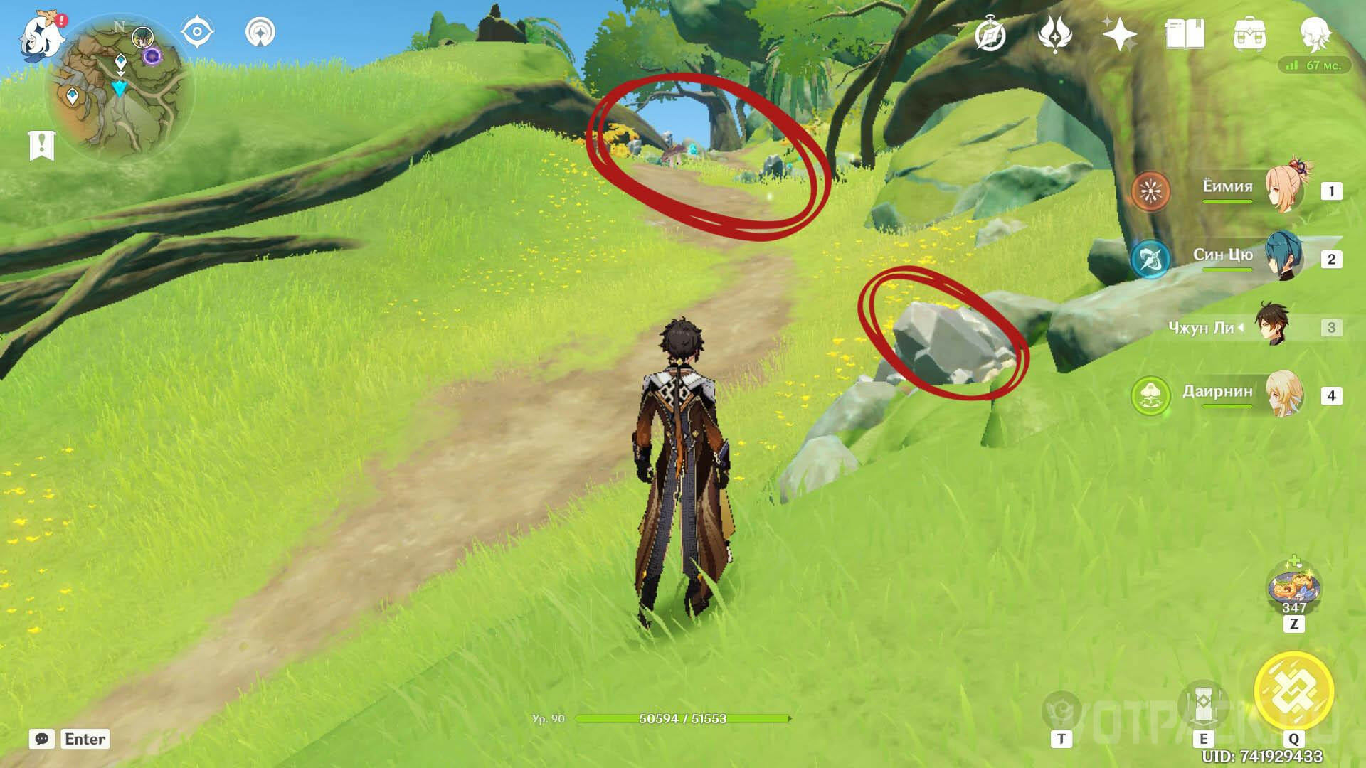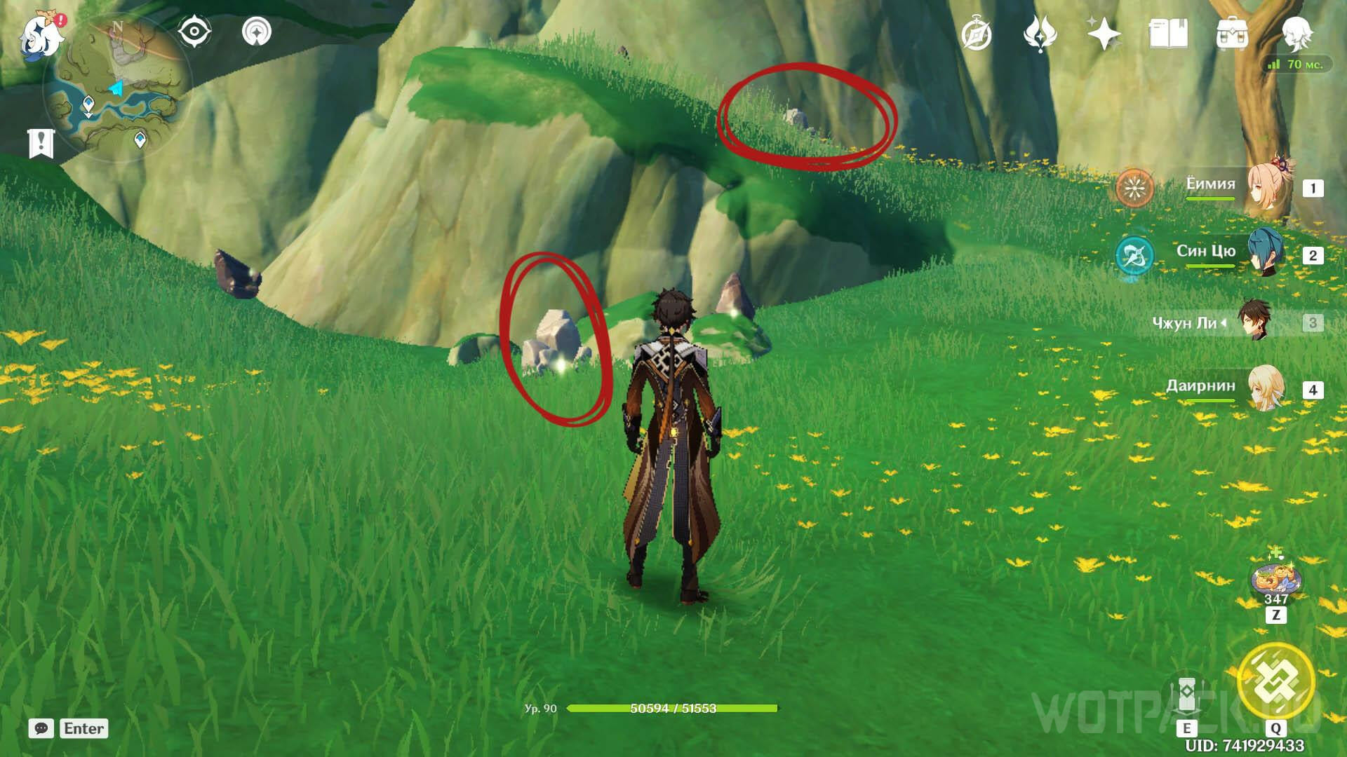 Для фарма стоит взять персонажей с клэймором: Ноэлль, Рэйзора, Дилюка, Дори, Саю или других. Нин Гуан отметит расположение ресурса на миникарте.