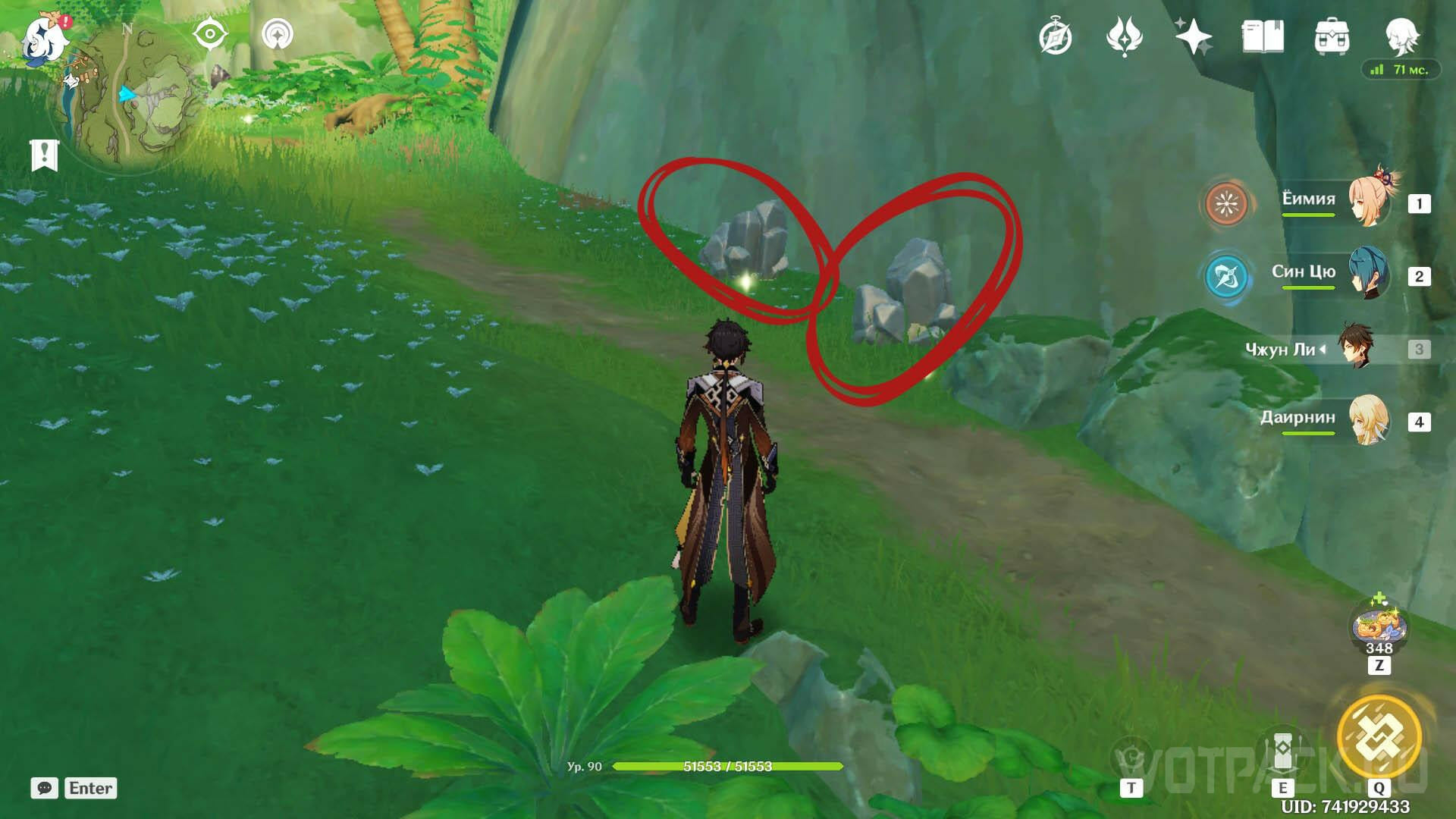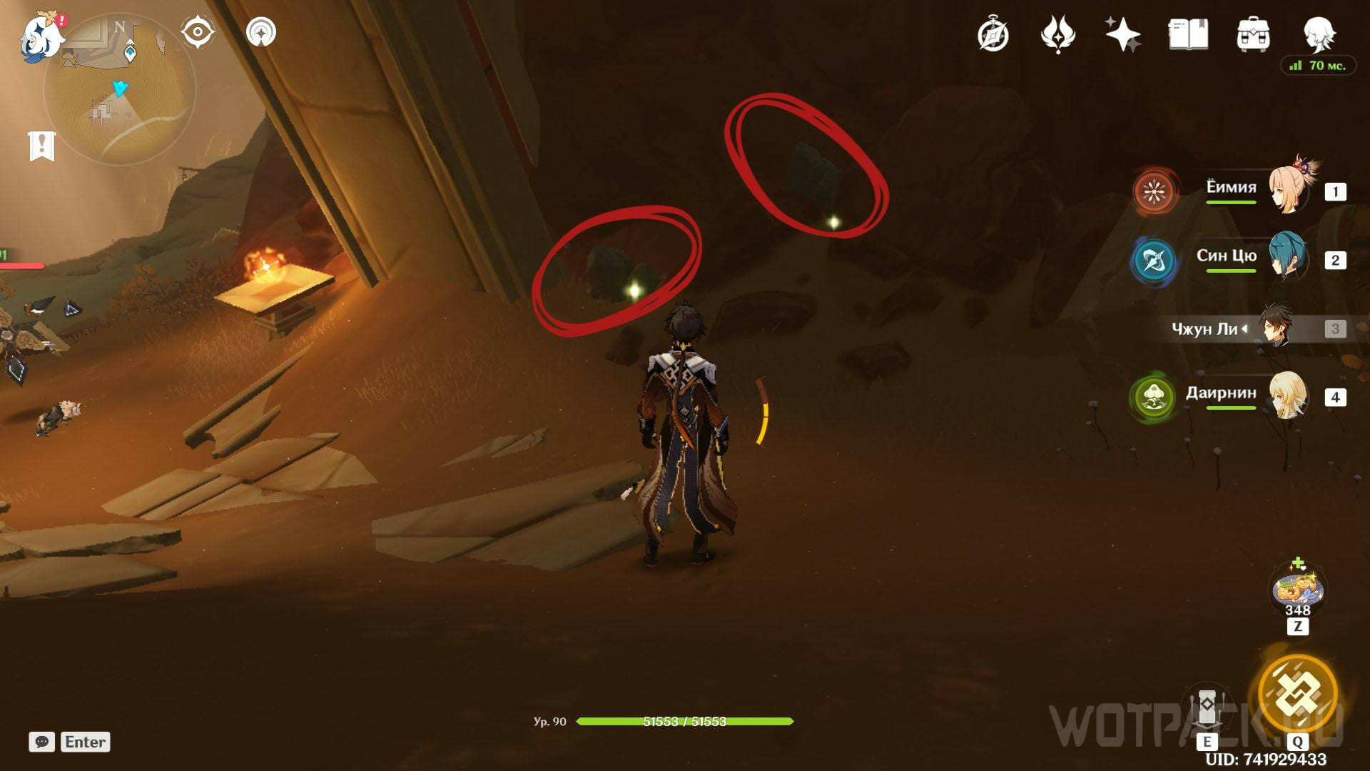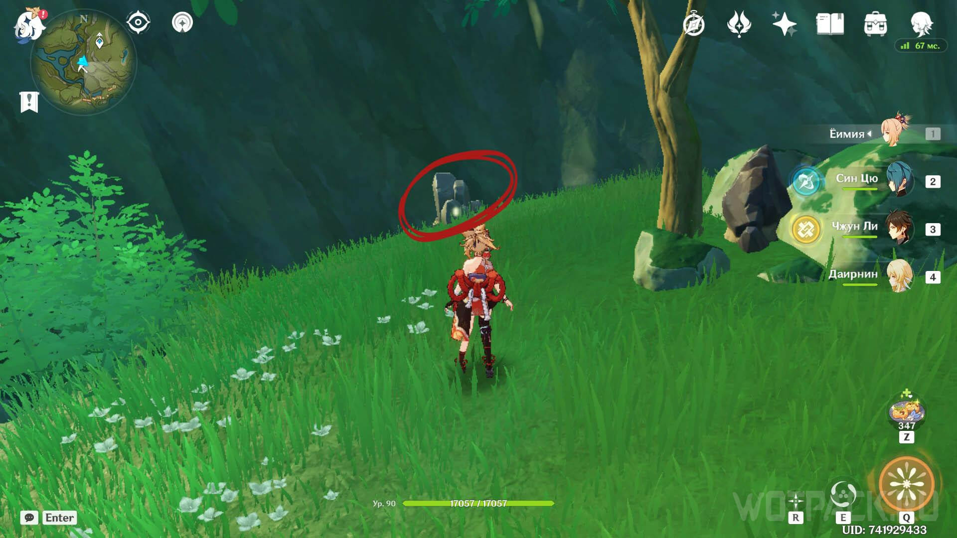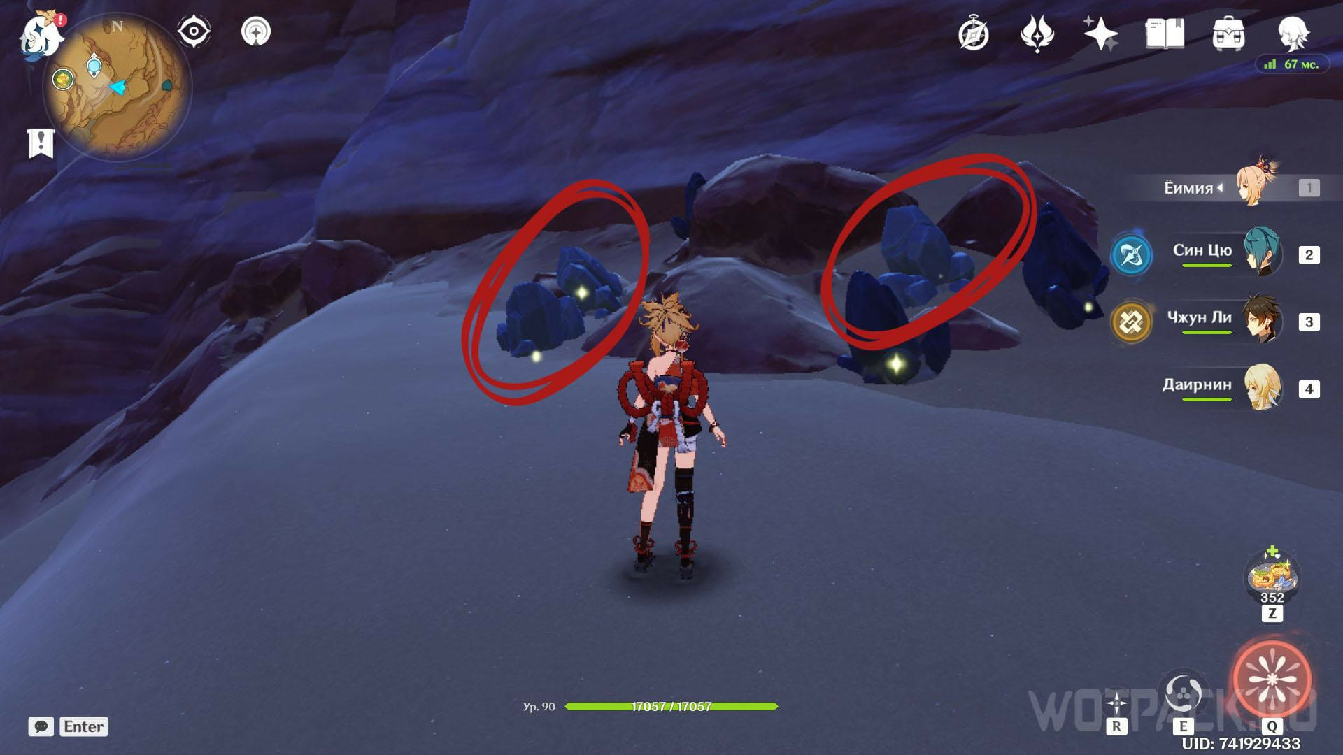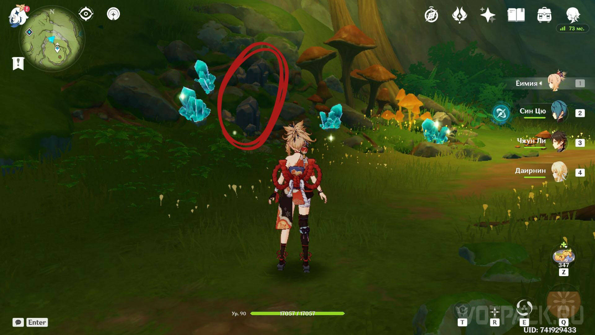 Для фарма стоит взять персонажей с клэймором: Ноэлль, Рэйзора, Дилюка, Дори, Саю или других. Нин Гуан отметит расположение ресурса на миникарте.
