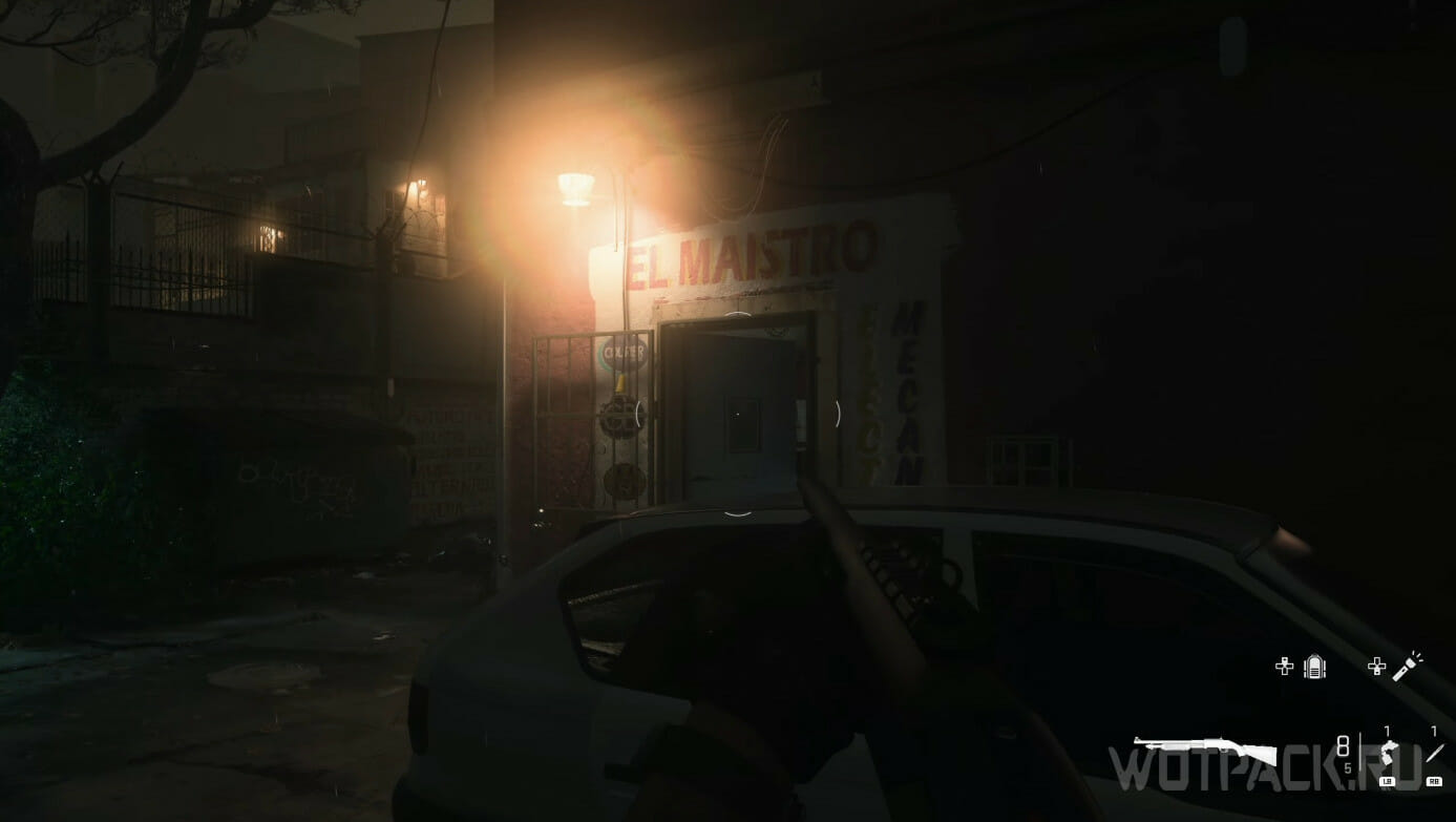 После открытия второго сейфа в 13 миссии «В одичноку», спрыгните в большое отверстие по центру комнаты. Выйдите через дверь слева, на улице пройдите недалеко и рядом с белой машиной обнаружите дверь в заведение «El Maistro». Проникните в него, чтобы оказаться в гараже-автомастерской.