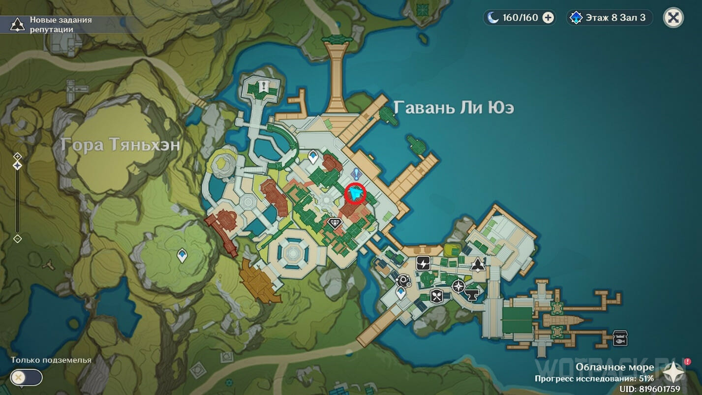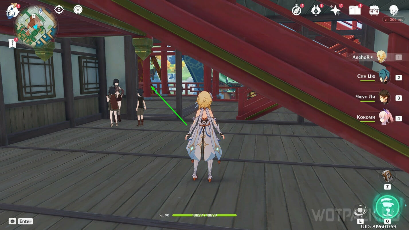 Отправляйтесь к телепорту за городом рядом с горой Тяньхэн, а затем парите направо к площади напротив главного здания (чуть выше иконка с бриллиантом). Из разговора узнаем, что Нин Гуан пригласила капитана Бэй Доу сюда, чтобы поиграть в шахматы, из-за чего последняя выказывает некоторое недовольство.