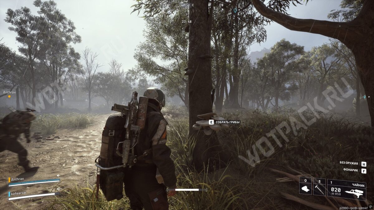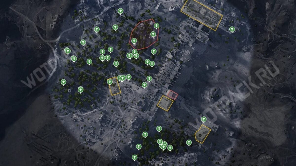 Болотистая локация имеет множество потенциальных пунктов спавна, но при этом вероятность нахождения здесь не такая высокая: можно весь рейд бегать по точкам и не собрать ни одного гриба.