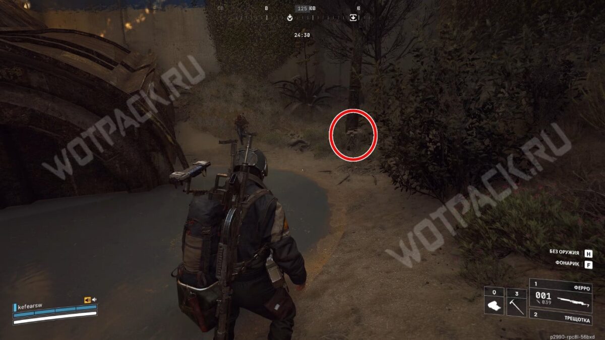 Отправляйтесь в траншею и найдите дерево, растущее в её конце, недалеко от цеха сбора ракет. На нём с вероятностью 100% появляются три гриба. Об этой локации знают многие и ходят сюда целенаправленно, из-за чего дерево часто пустует, а шанс наткнуться на игрока здесь выше.
