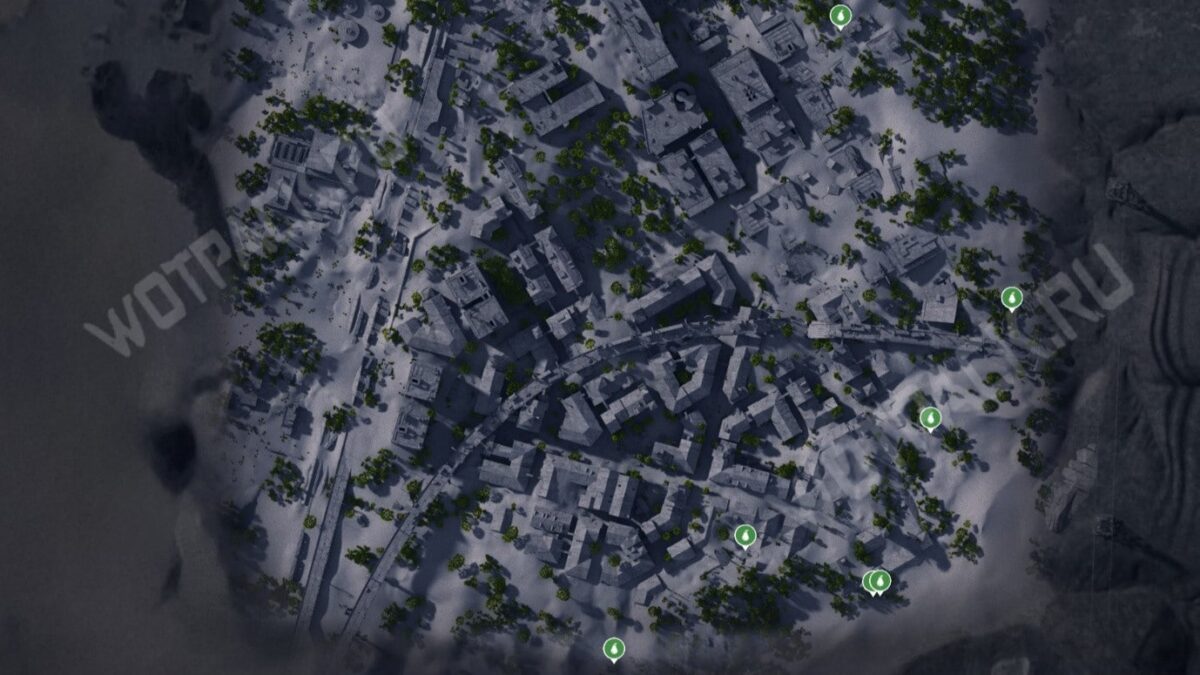Засыпанное песком поселение ещё более бедно на растительность. Опунция встречается в основном по окраинам, где довольно много деревьев. Среди них встречаются и колючие плодоносы, но они сконцентрированы в восточной части города. Пробегитесь по краю карты и обязательно найдёте несколько кустов.