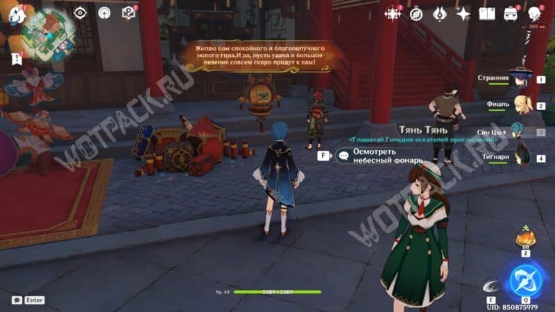 Завершив беседу с парнем, вы увидите стилизованный небесный фонарь. Взаимодействуйте с ним, чтобы получить особое блюдо персонажа и его личные поздравления.