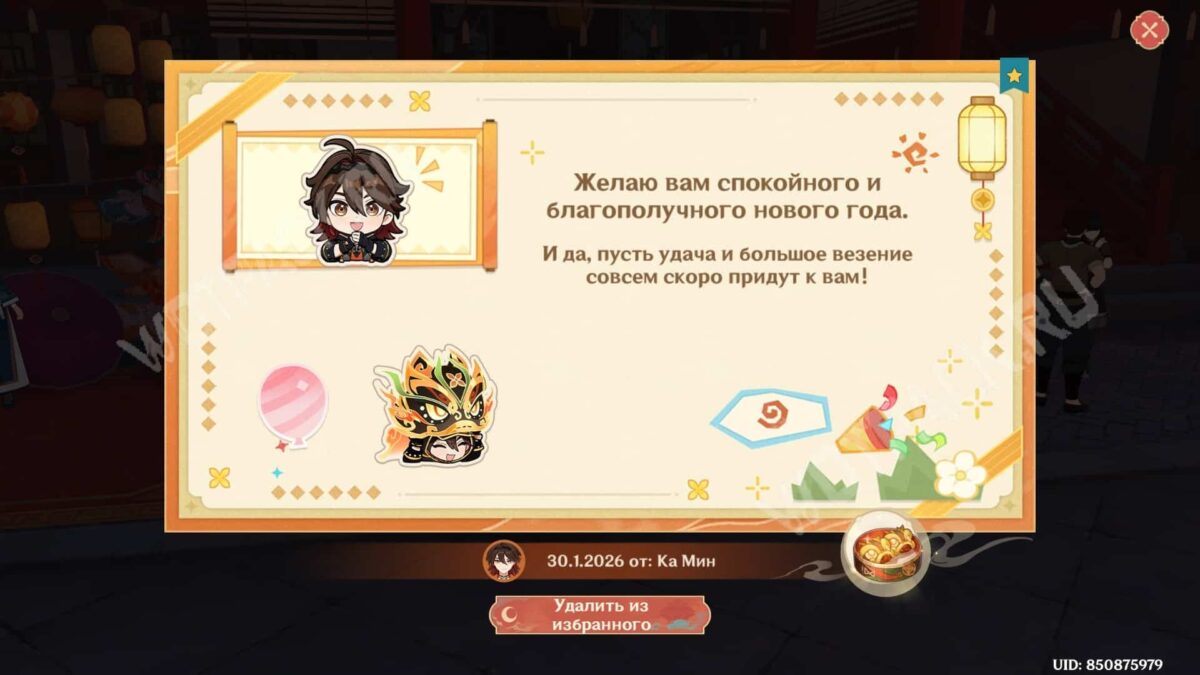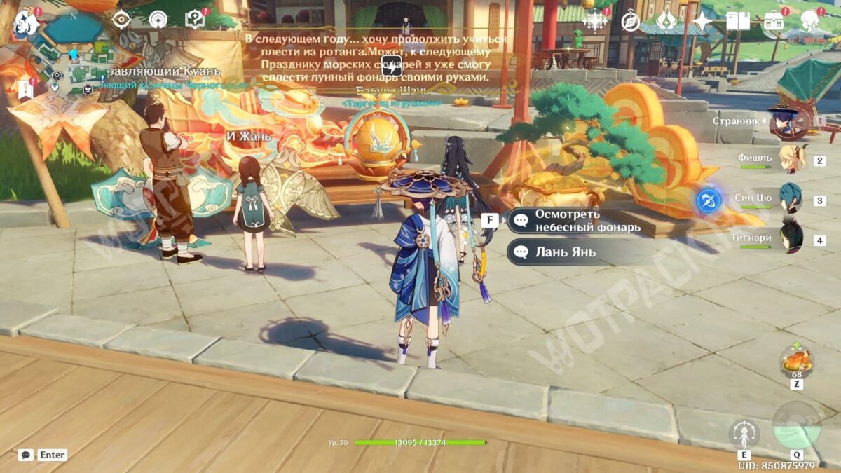Завершив беседу с парнем, вы увидите стилизованный небесный фонарь. Взаимодействуйте с ним, чтобы получить особое блюдо персонажа и его личные поздравления.
