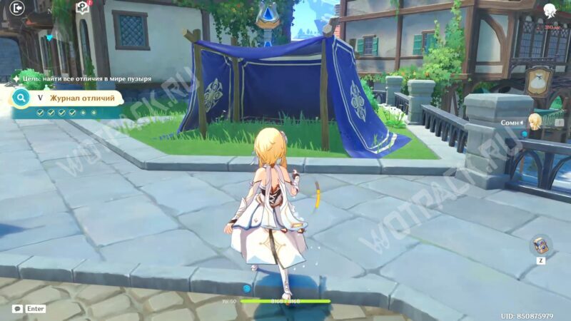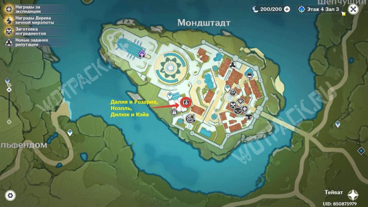 - После первого задания для разговора доступен Кэйа, Рэйзор и Клоринда с Эолой. Капитан рыцарей стоит на площади фестиваля, а остальные проводят время в магическом пузыре ведьм.