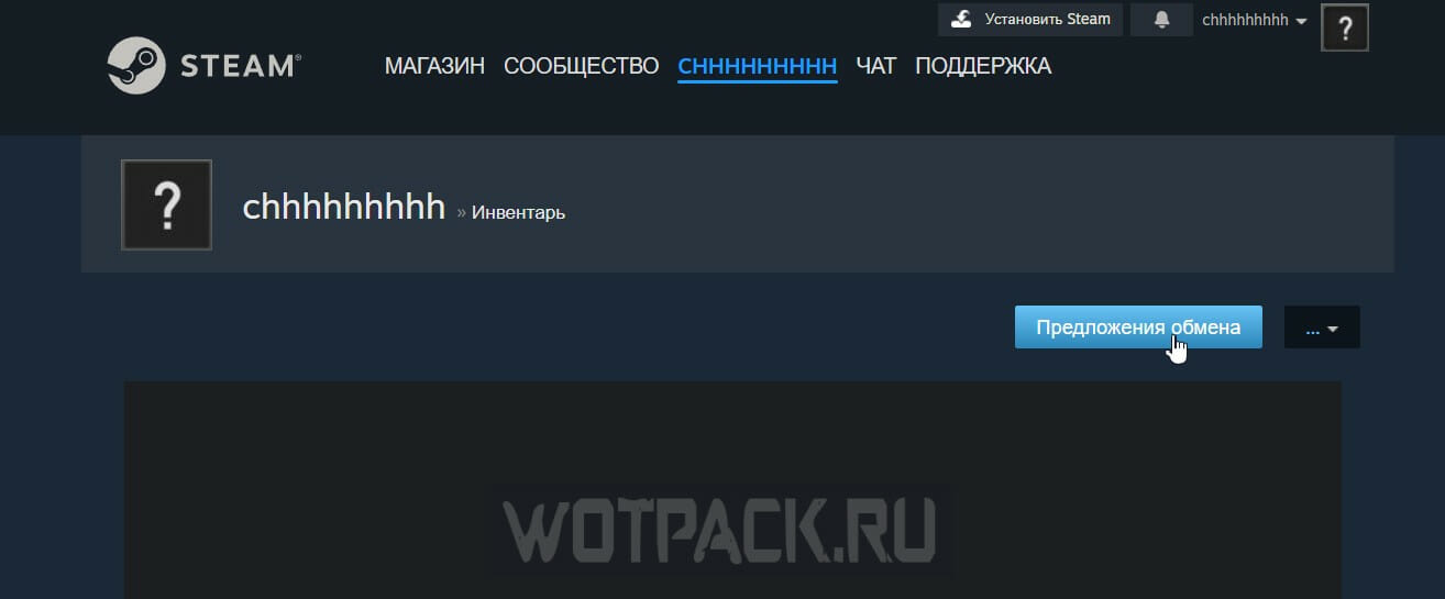 - Здесь отображаются все имеющиеся на аккаунте предметы. Нажмите на кнопку «Предложения обмена» и Steam перебросит на новую страницу для дальнейших действий.
