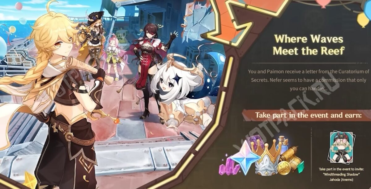 В Genshin Impact основной ивент патча 6.5 — «Где волна набегает на риф», и он посвящен международной торговой выставке, которую организовал Кураторий тайн под предводительством босса Нефер. Мероприятие пройдёт в Нод-Крае, куда прибудут гости из Ли Юэ, Фонтейна и других регионов.