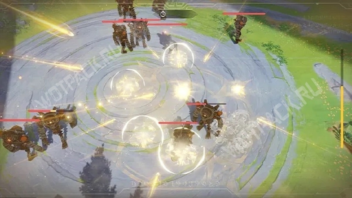 Выполняя условия конкретного этапа, например, составив команду через определенную элементальную реакцию или стиль боя, будете накапливать очки прогресса и заряжать баллисту богини Пыли Гуй Чжун. Выстрел ею мгновенно уничтожит мощных противников и принесет еще больше баллов, чем «обычная» победа над противниками.