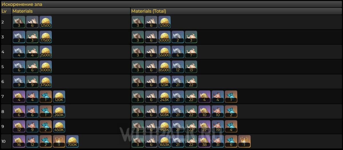 Рассмотрим подробнее, какие материалы необходимы для прокачки до максимального уровня и возвышения всех его талантов.