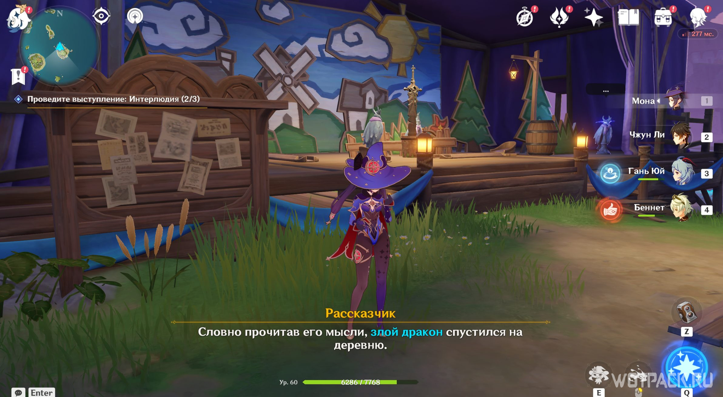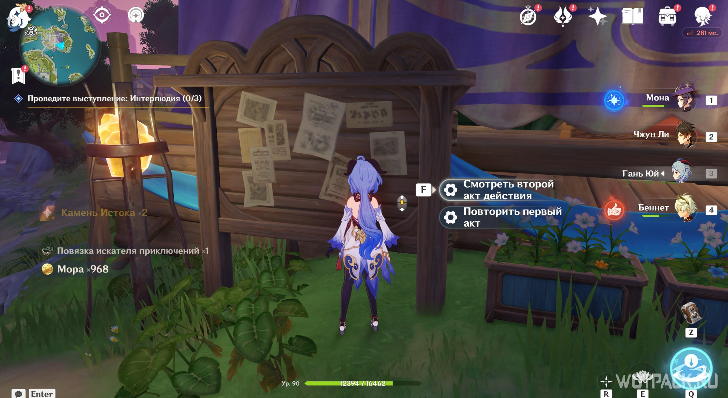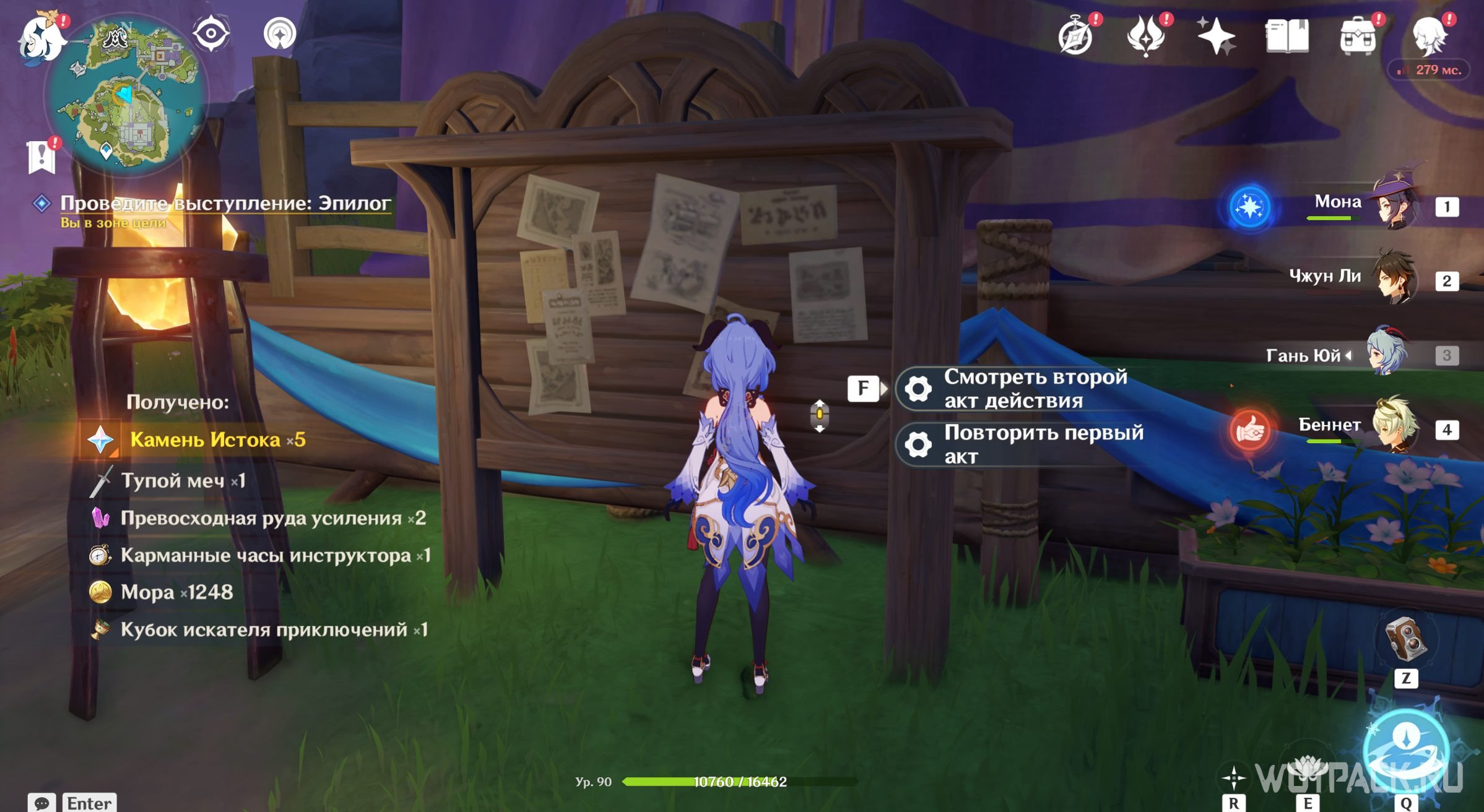 Откройте богатый сундук и начните смотреть второй акт, выбрав нужную функцию у доски объявлений.