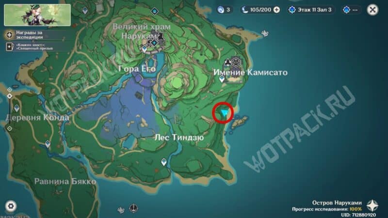 Посетите юго-западную точку леса Тиндзю, чтобы после предложения Паймон найти источник странного голоса миссия автоматически отобразилась в журнале заданий.