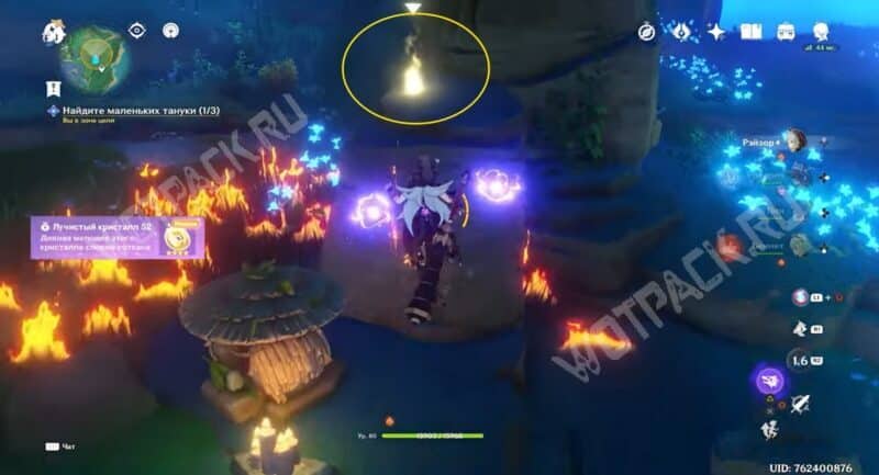 Первым делом очистите светильник с помощью оберега. Сверху на дереве увидите подсказку, как правильно активировать и соединить остальные фонари.