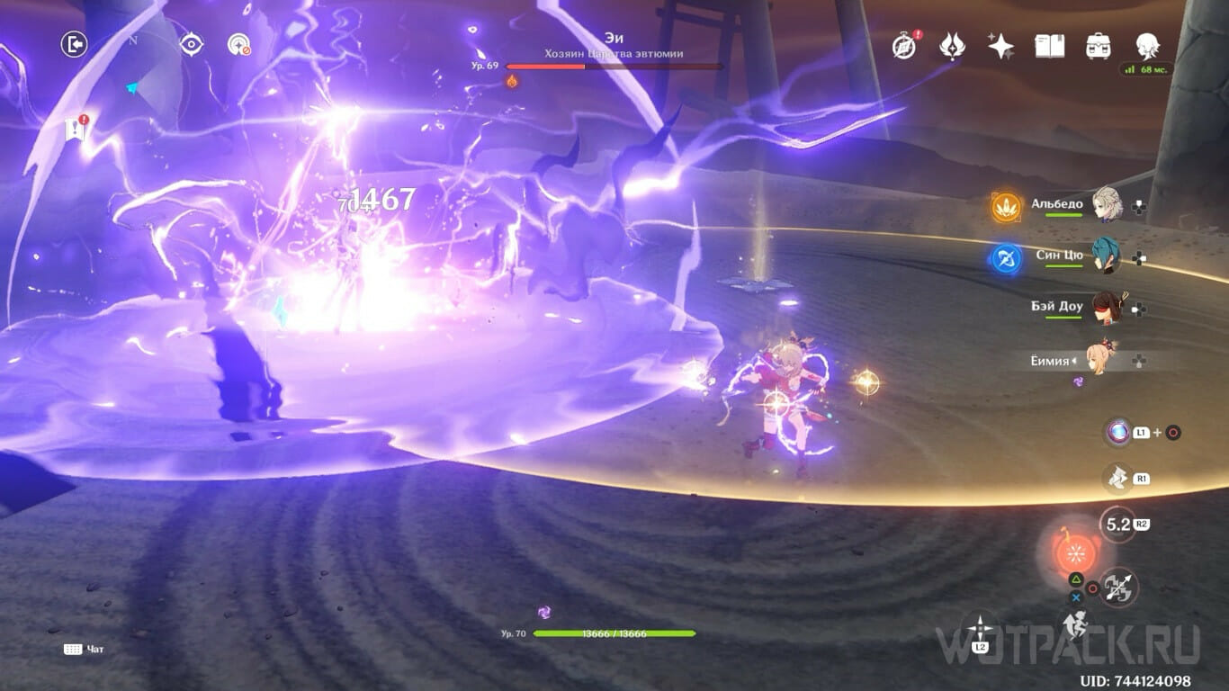 Техники Райдэн совпадают с теми, которым обучала Яэ Мико, поэтому следует таким же образом избегать ее обычных атак молниями и особой атаки с Электро кристаллами — успейте уничтожить один их них, чтобы обеспечить безопасное место.