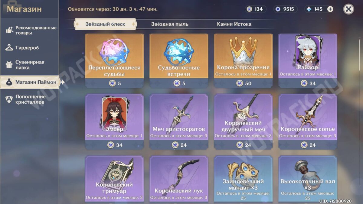 Материалы доступны в ограниченном количестве (за исключением молитв за блеск), и чтобы повторно их приобрести, придется подождать, пока Магазин Паймон обновится. Происходит это раз в месяц 1-го числа.