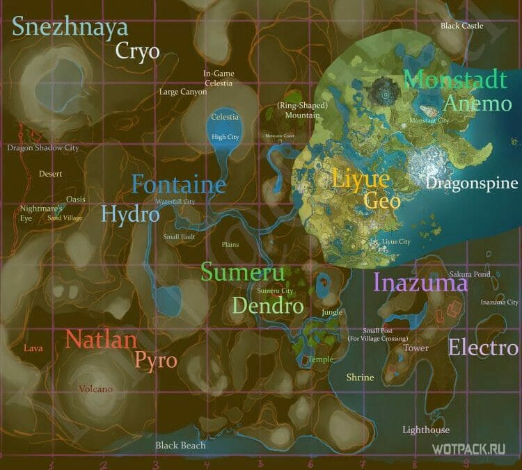 На данный момент сложно предположить, где находятся будущие локации, так как на официальной карте они не показаны, но учитывая вышедший контент, открытый мир в Genshin Impact будет очень большим. В игре есть территории Мондштадта, Ли Юэ, Инадзумы, Сумеру, Фонтейна и Натлана, а также древнего королевства Ремурия.