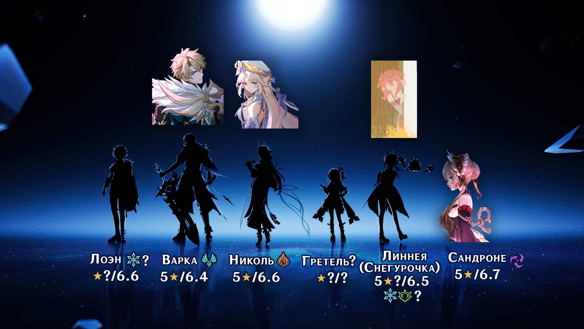 На официальной трансляции по 6.3 показали силуэты будущих героев 6.Х (Лоэна, Варки, Николь, Линнеи, Снегурочки) и тень Сандроне.