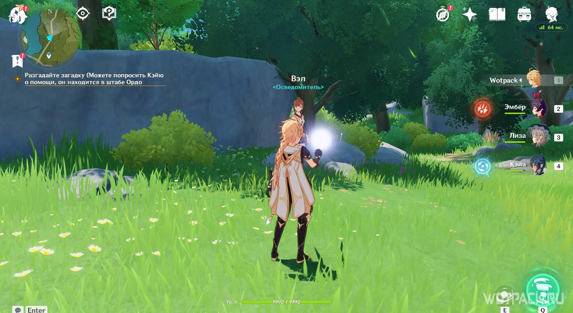 Для начала отправляйтесь в Гильдию Искателей Приключений. Разговор не принесет пользу, так как там никто об этом не знает, но вас подслушают бандиты. Потом возвращайтесь к Кэйе и он поделится наводкой – нужно встретиться с осведомителем Вэл в Шепчущем лесу.