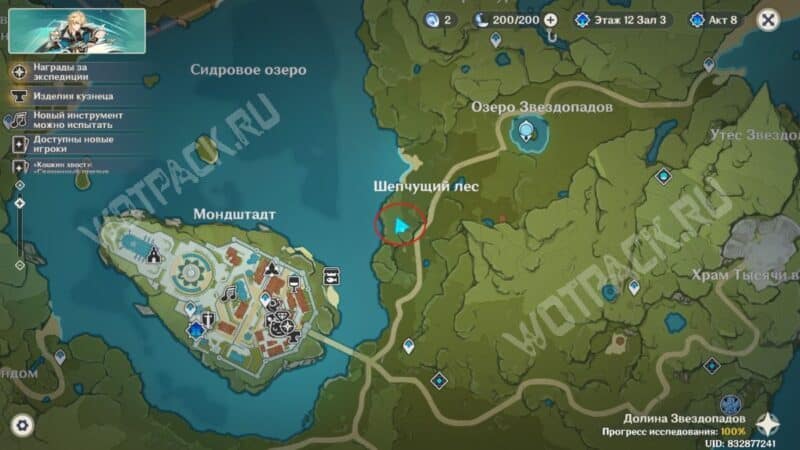 Войдя в здание, поверните налево и в кабинете магистра спросите Джинн о сильнейшем воине из Мондштадта. Она расскажет, что записей о таком никто не ведёт, а также добавит, что неподалёку от города заметили одного мага Бездны, и попросит с ним разобраться.