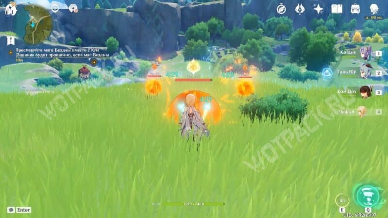 Далее появятся большие земляные слаймы. Чтобы разбить их щит, используйте персонажей с двуручным мечом или прожмите Е-шку героев с Гео элементом.