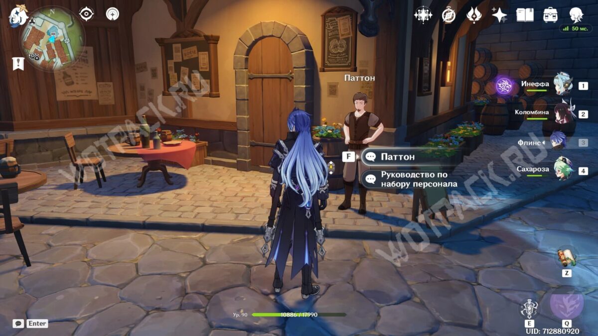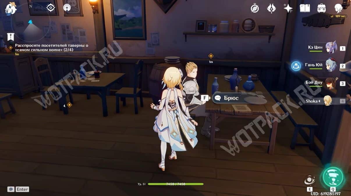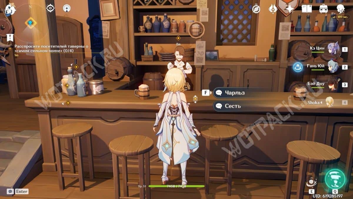 Дождитесь ночи (с 19:01 по 5:59) и узнайте у Паттона популярные темы для разговора. Мужчина стоит на улице около входа в таверну «Доля ангелов». После разговора с ним станет ясно, что все сейчас обсуждают достаточно интересный вопрос — «кто самый сильный воин в Мондштадте?».