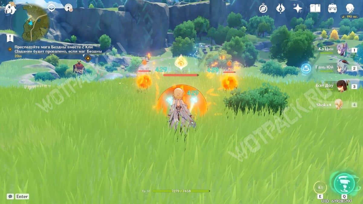 Первый раз будет совсем недалеко, на уступе. Монстр призовёт двух маленьких и одного большого Пиро слайма. Они не самые сильные враги, но преимуществом против них имеют Гидро и Крио персонажи.