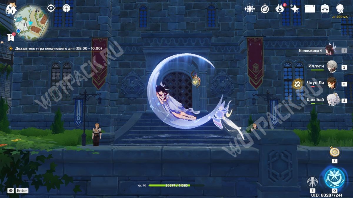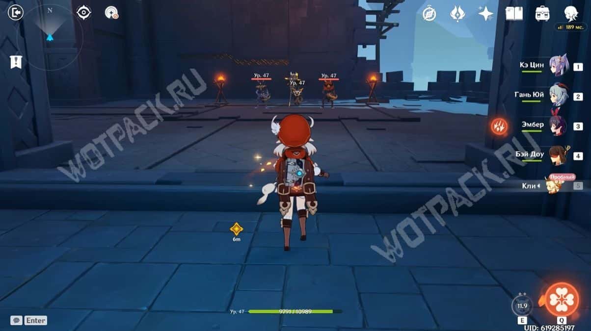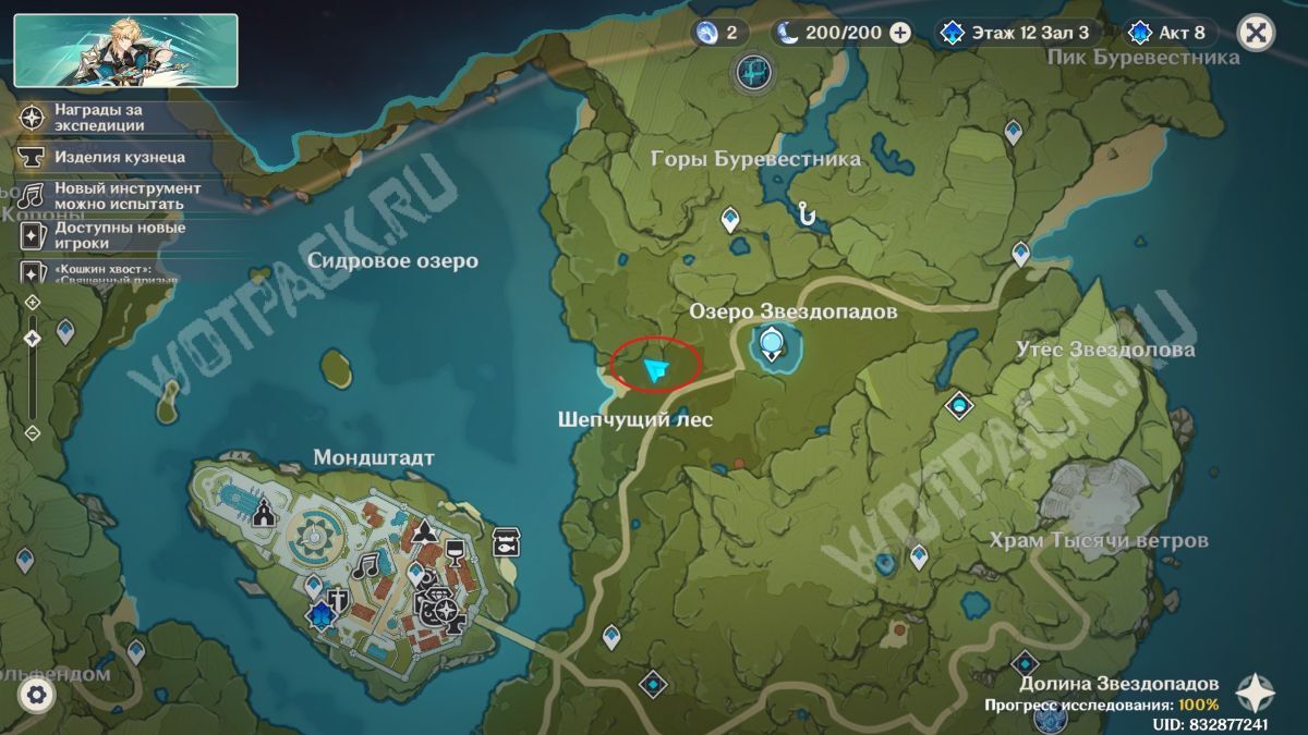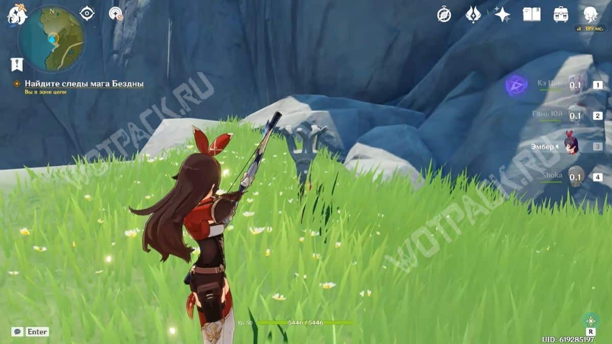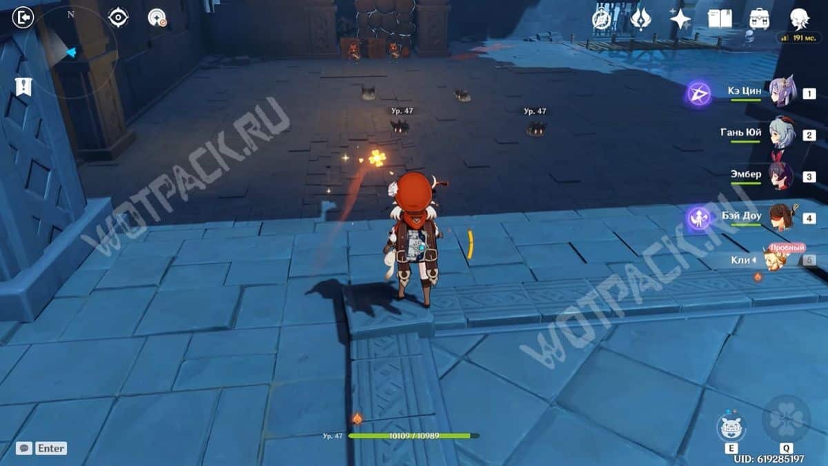 Пересеките мост, убейте хиличурла и пройдите направо. Затем разбейте каменную кладку посередине стены и войдите в комнату, в которой есть богатый сундук.