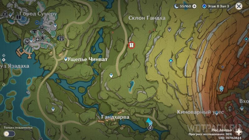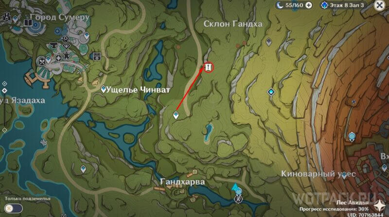 Если телепортировались из локации, и не получается вернуться, переместитесь к Статуе Архонта поблизости (рядом с Гандхарвой) и направляйтесь вперед ко входу — он должен быть открыт.