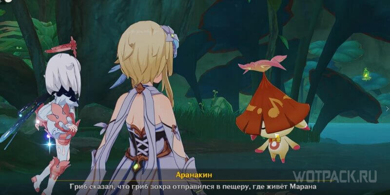 Для этого парите вниз – искомый объект находится внизу под корнями. На самом деле это обычный гриб руккхашава. Однако он поведает Аранакину, что зохра отправился в пещеру, где живет марана, чтобы задержать ее распространение.