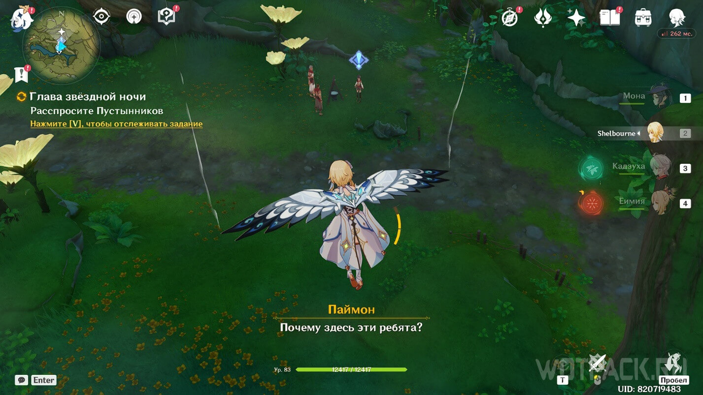 Телепортируйтесь к Статуе Архонта к востоку от Гандхарвы в Сумеру и парите вниз к костру. Недалеко от входа в пещеру можно заметить группу людей. Подойдите к ним и начните диалог, чтобы приступить к выполнению квеста.