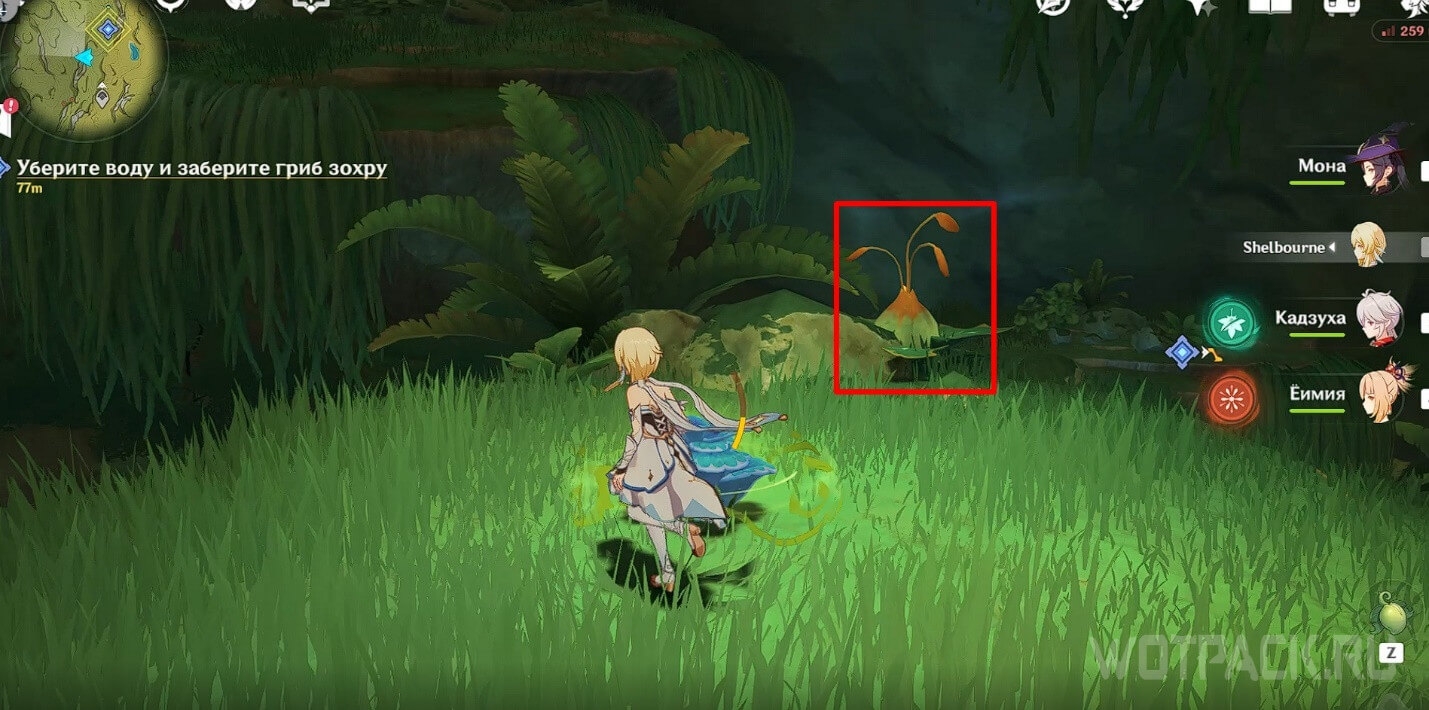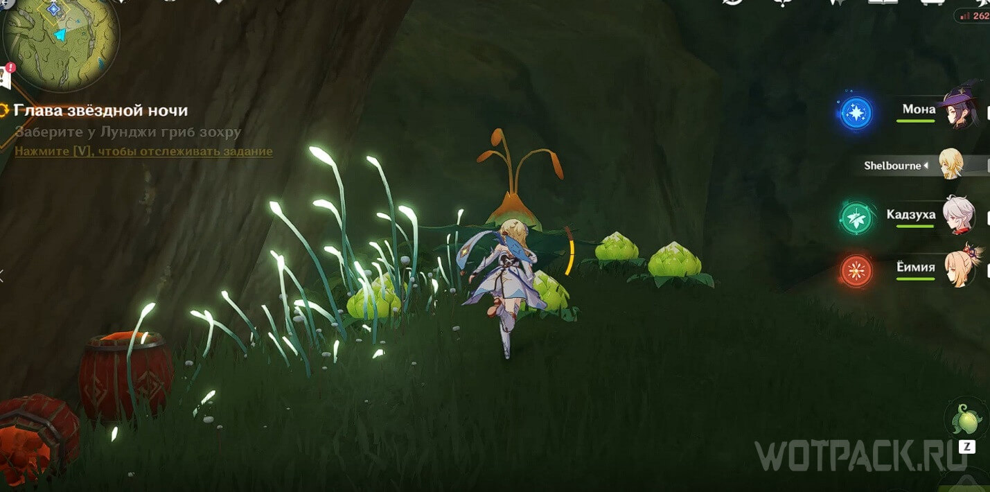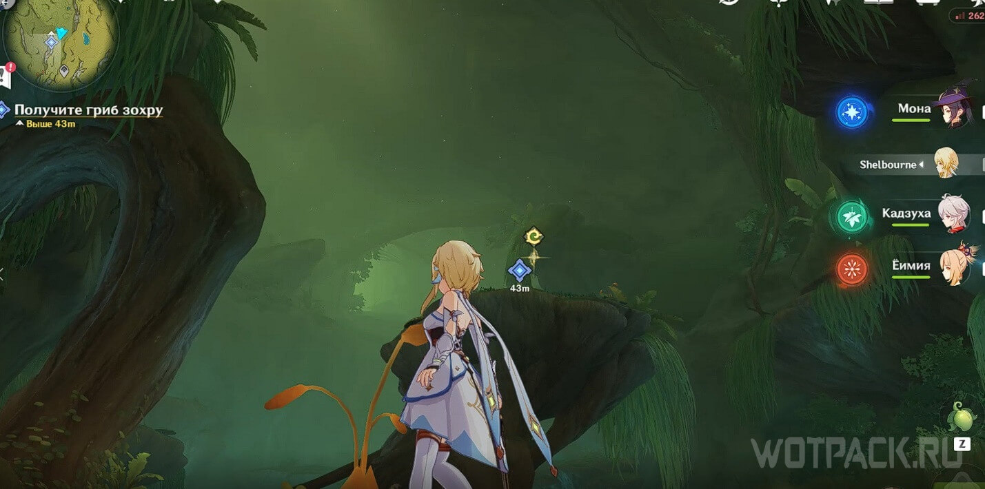 Теперь, когда вода в пещере на достаточно низком уровне, исследуйте указанную область и найдите гриб зохра.