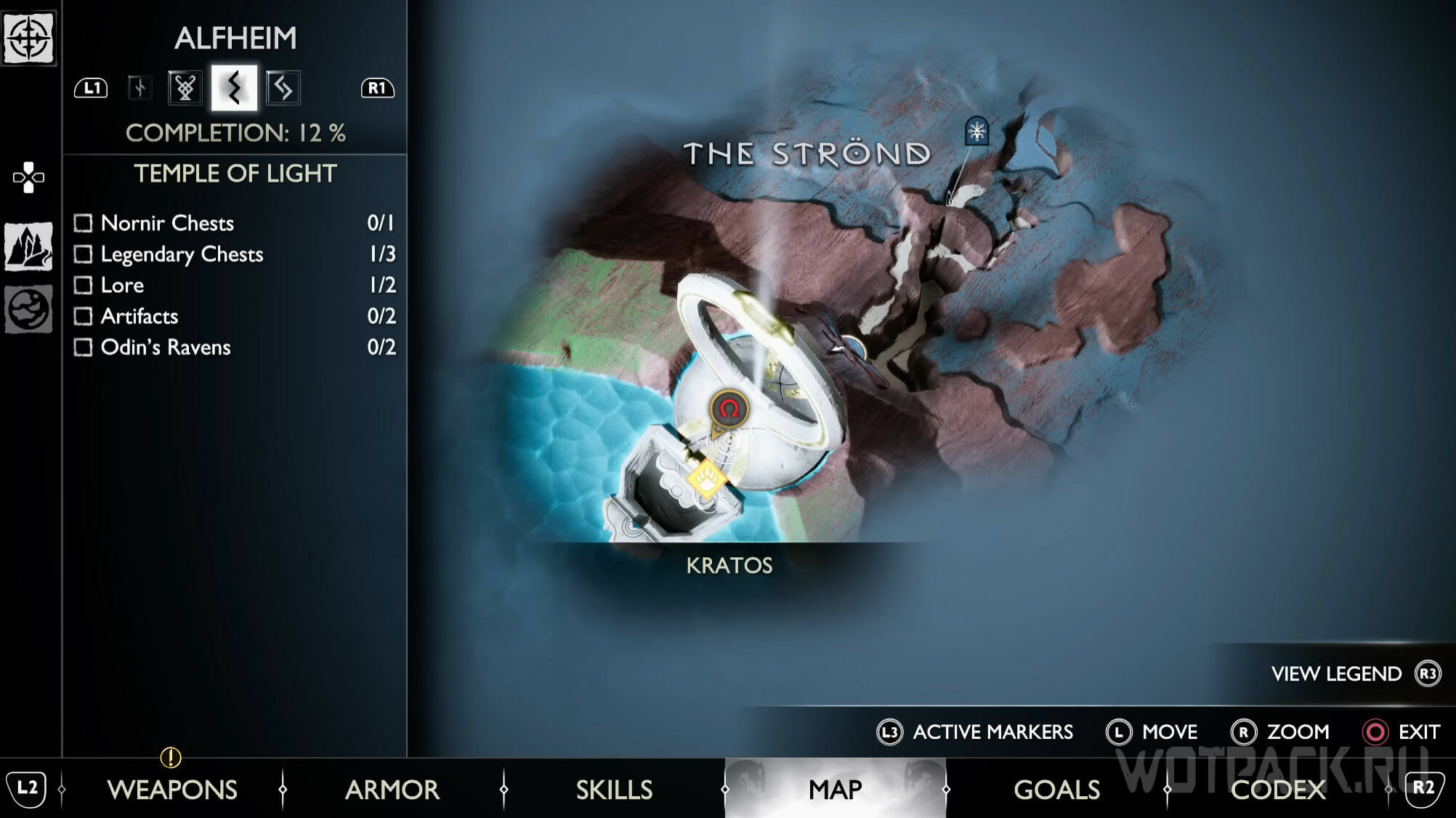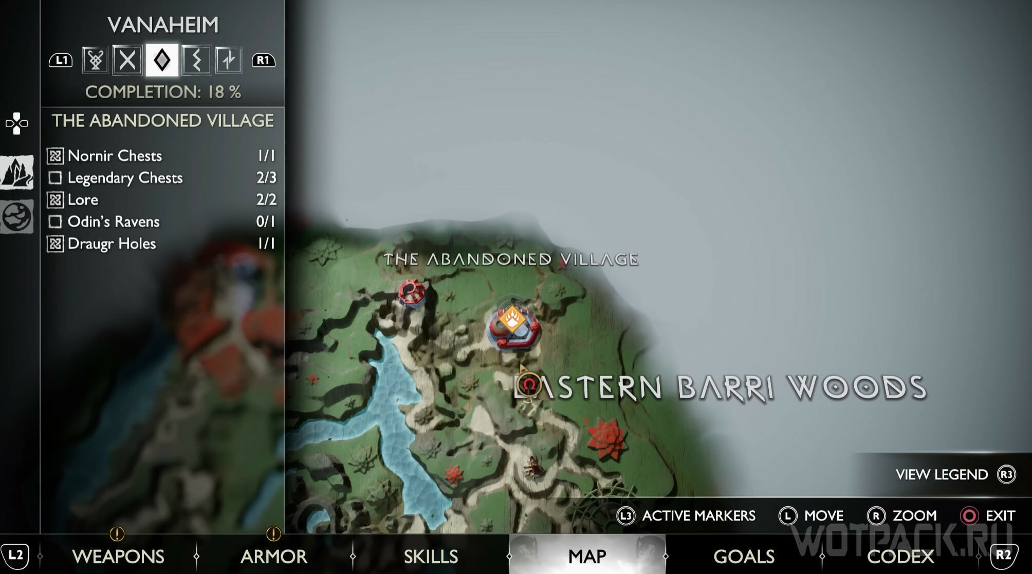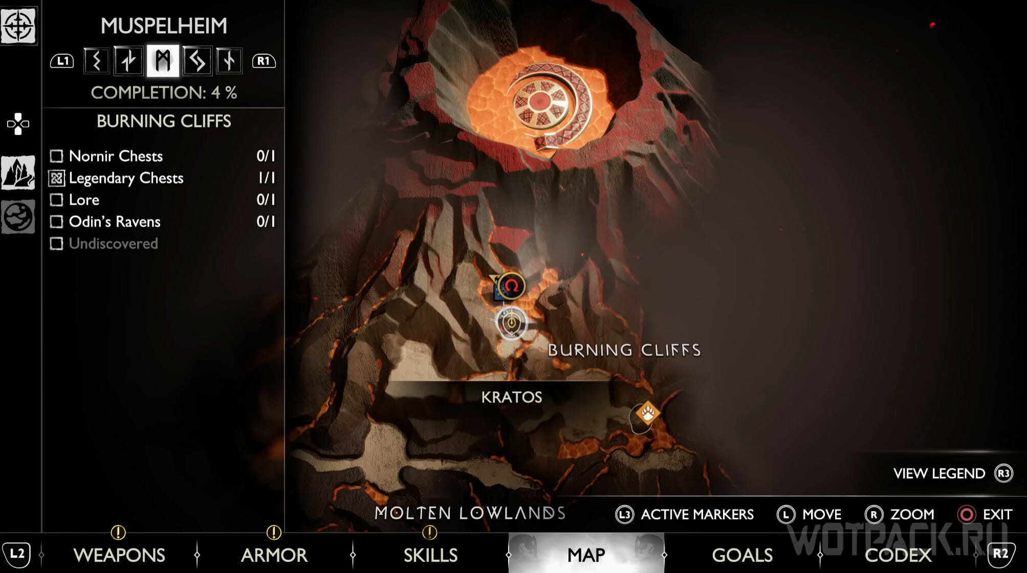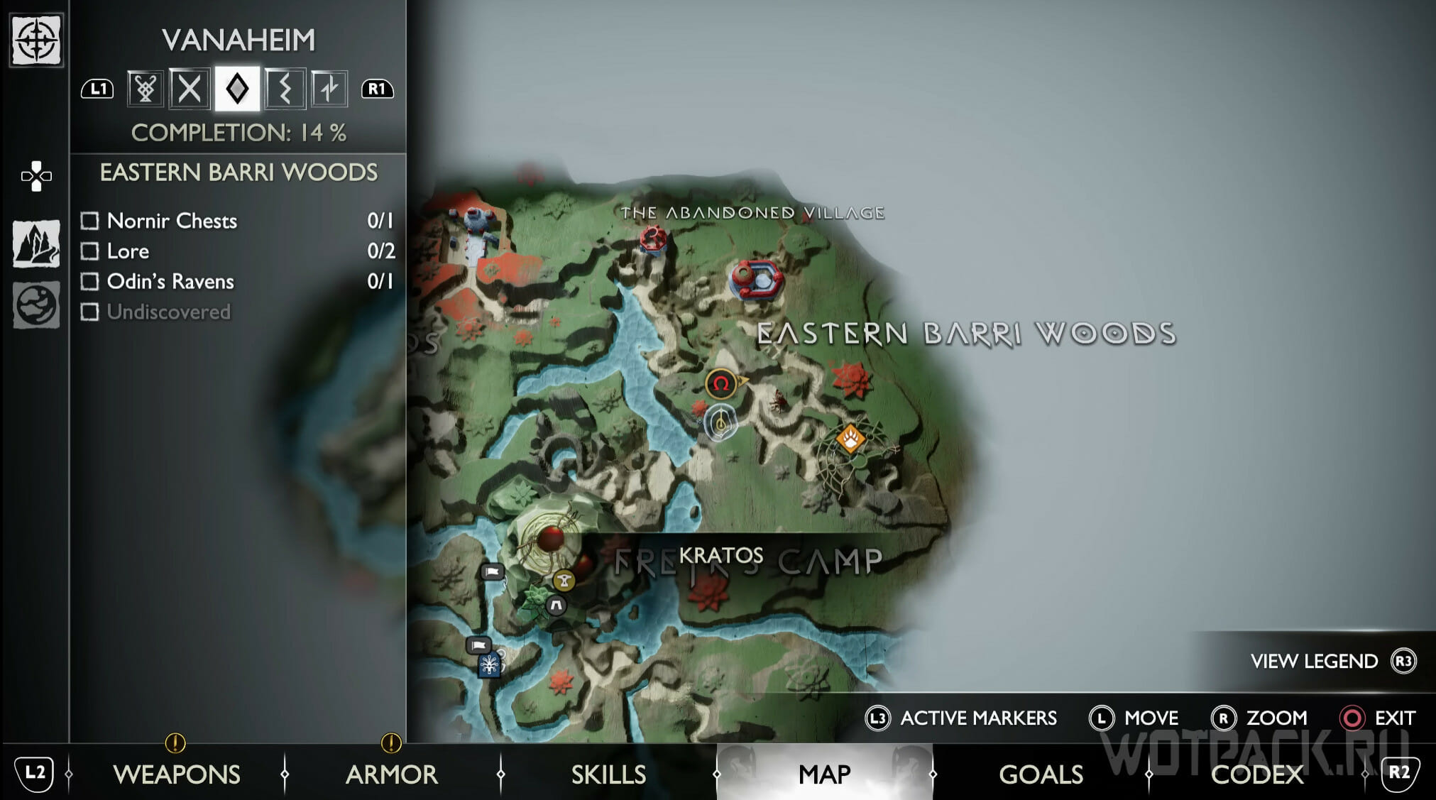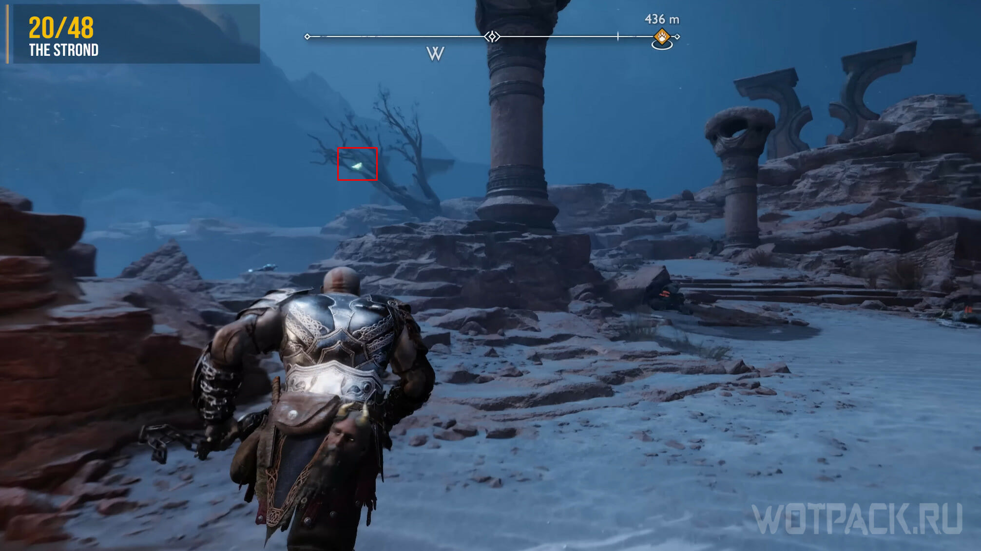 Найдите возвышенность в центре, через которую Кратос проходил по сюжету. Здесь же есть сундук Норн. Спрыгните слева и посмотрите за забор: там летает птица.