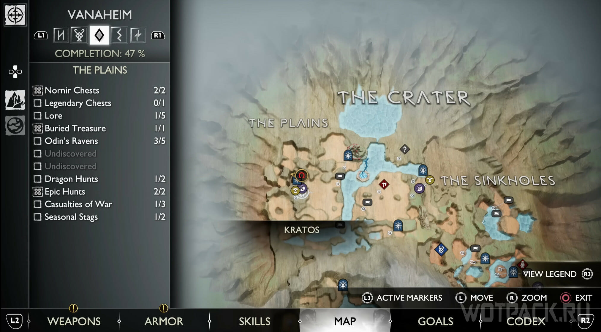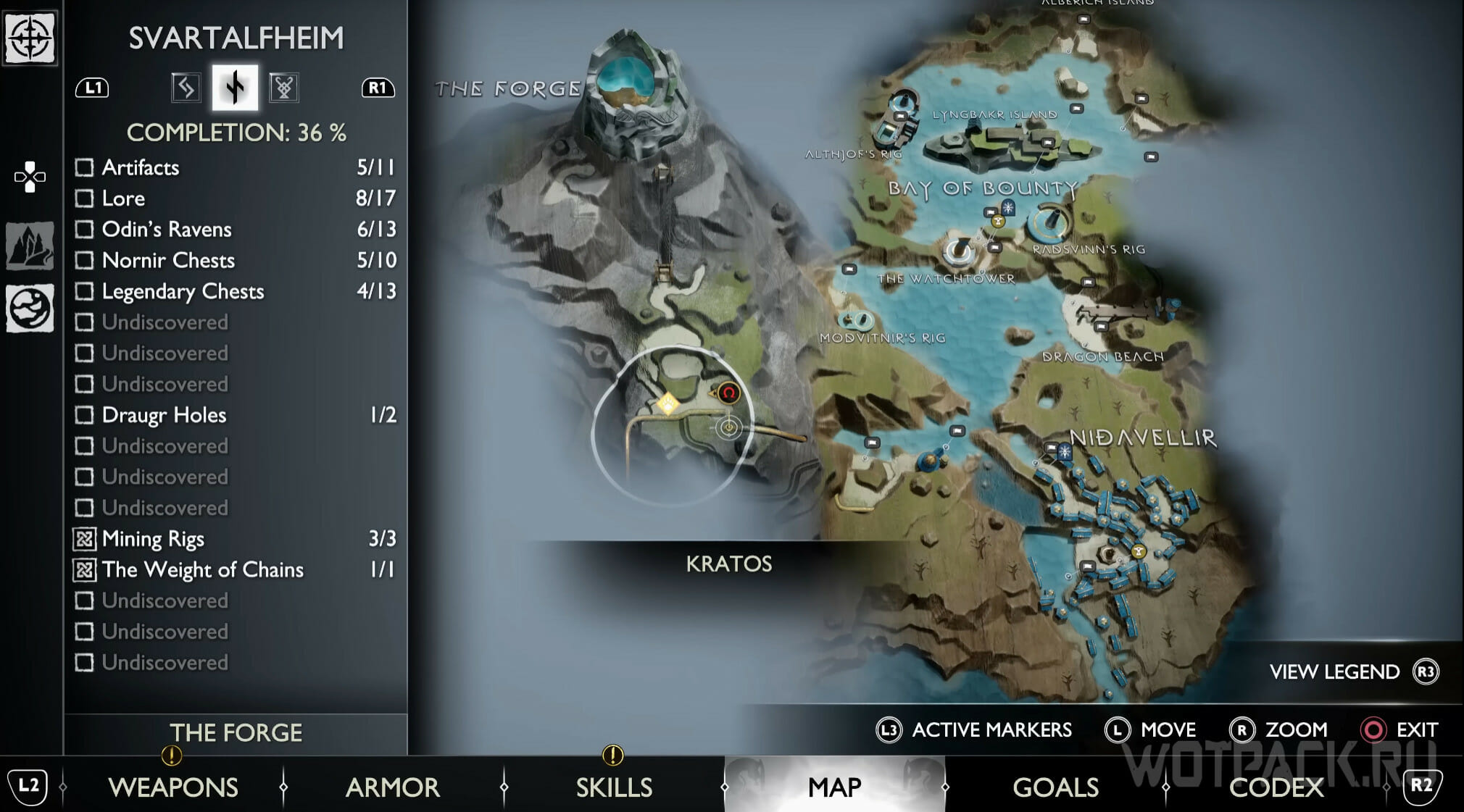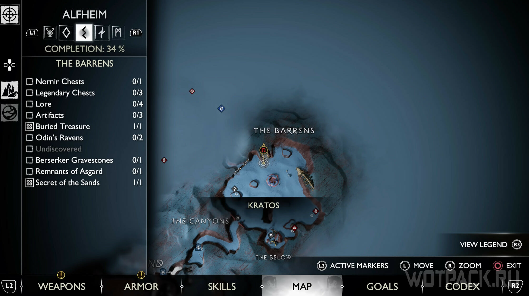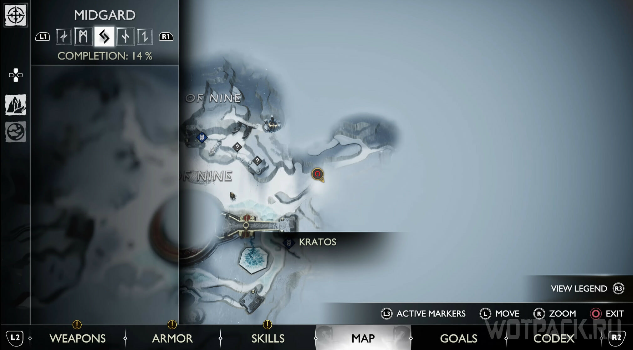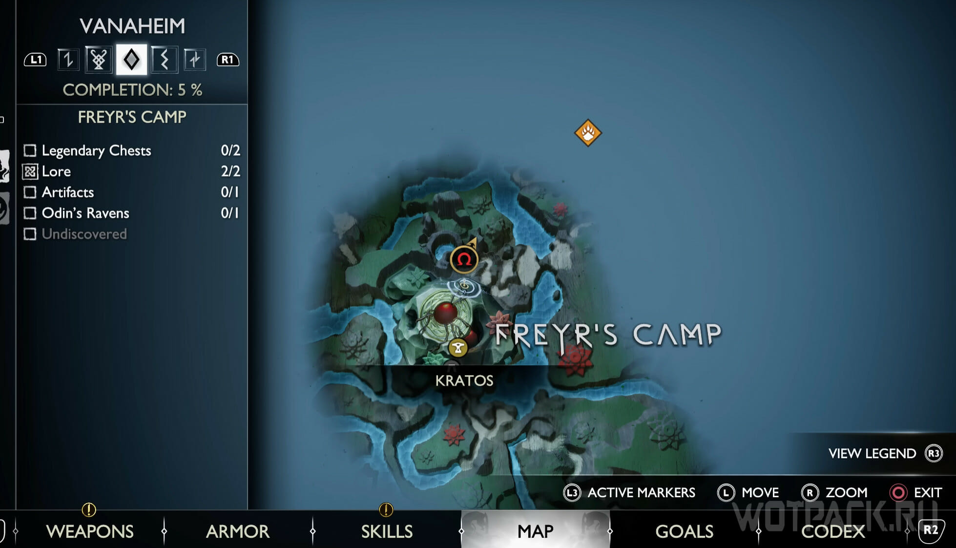 Найдите возвышенность в центре, через которую Кратос проходил по сюжету. Здесь же есть сундук Норн. Спрыгните слева и посмотрите за забор: там летает птица.