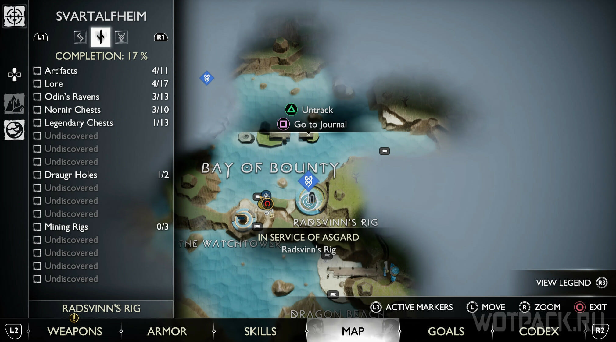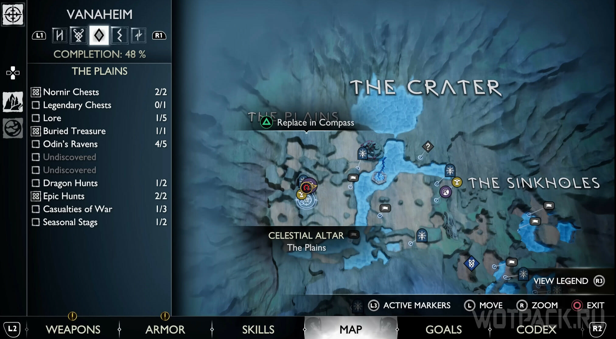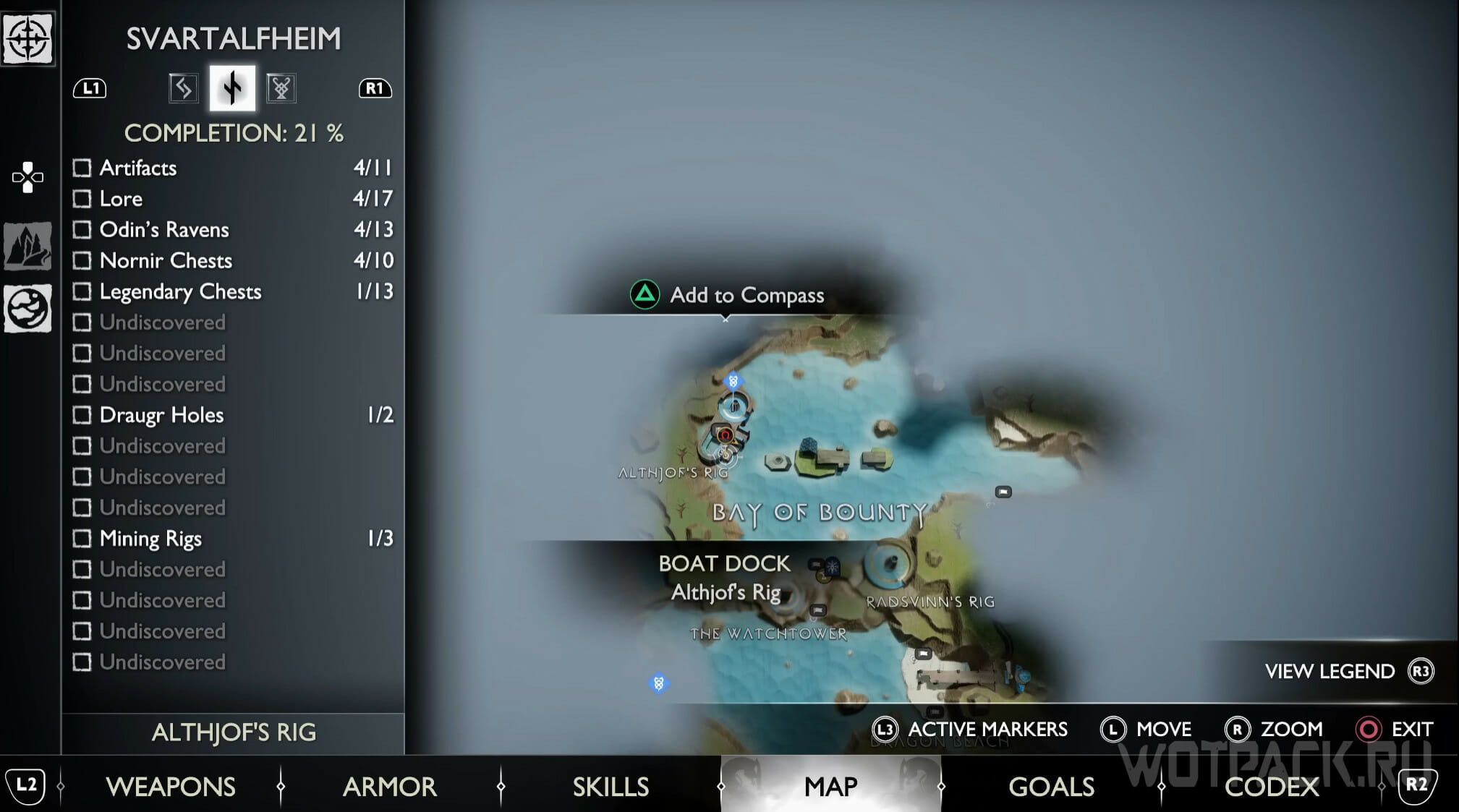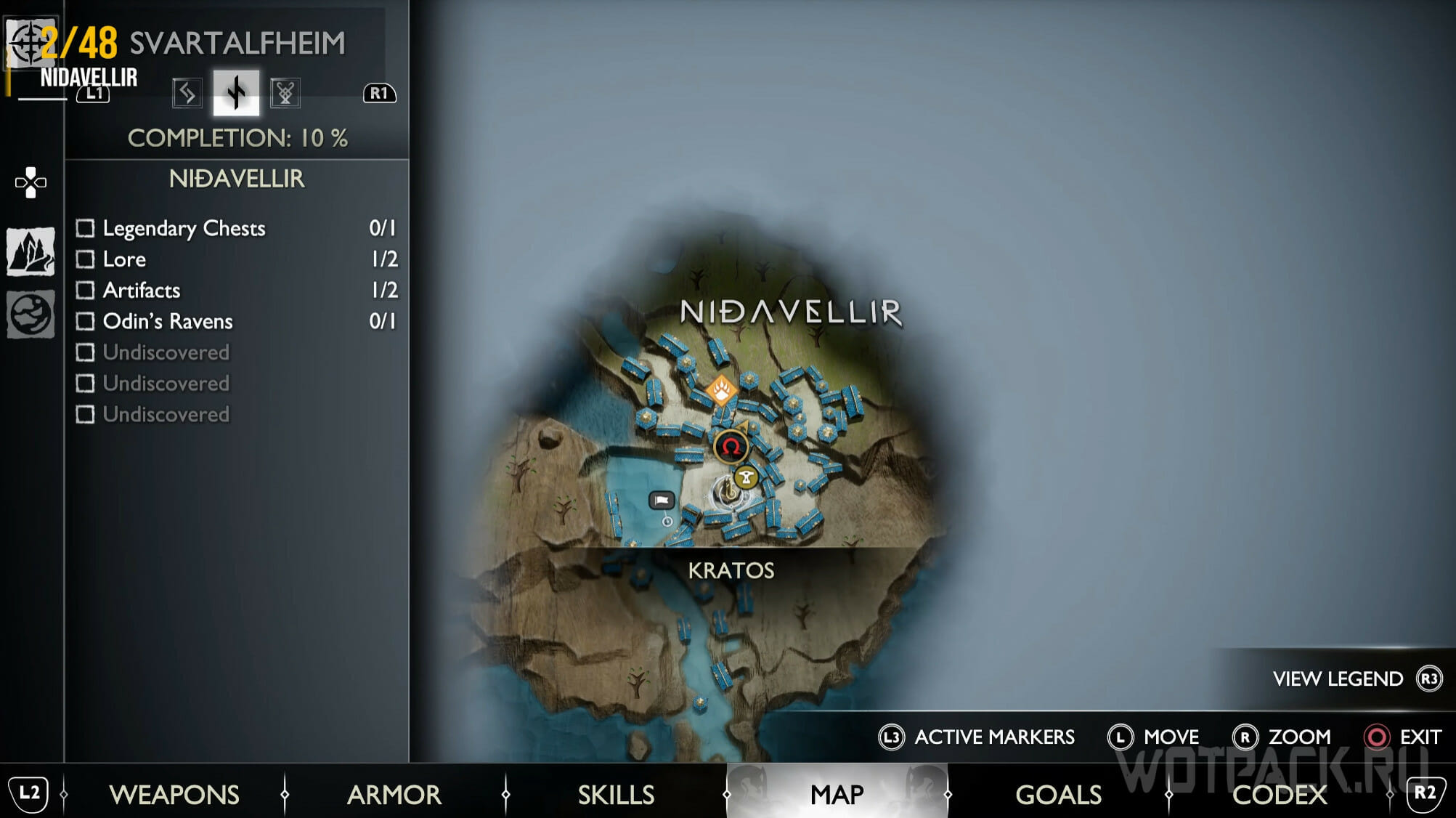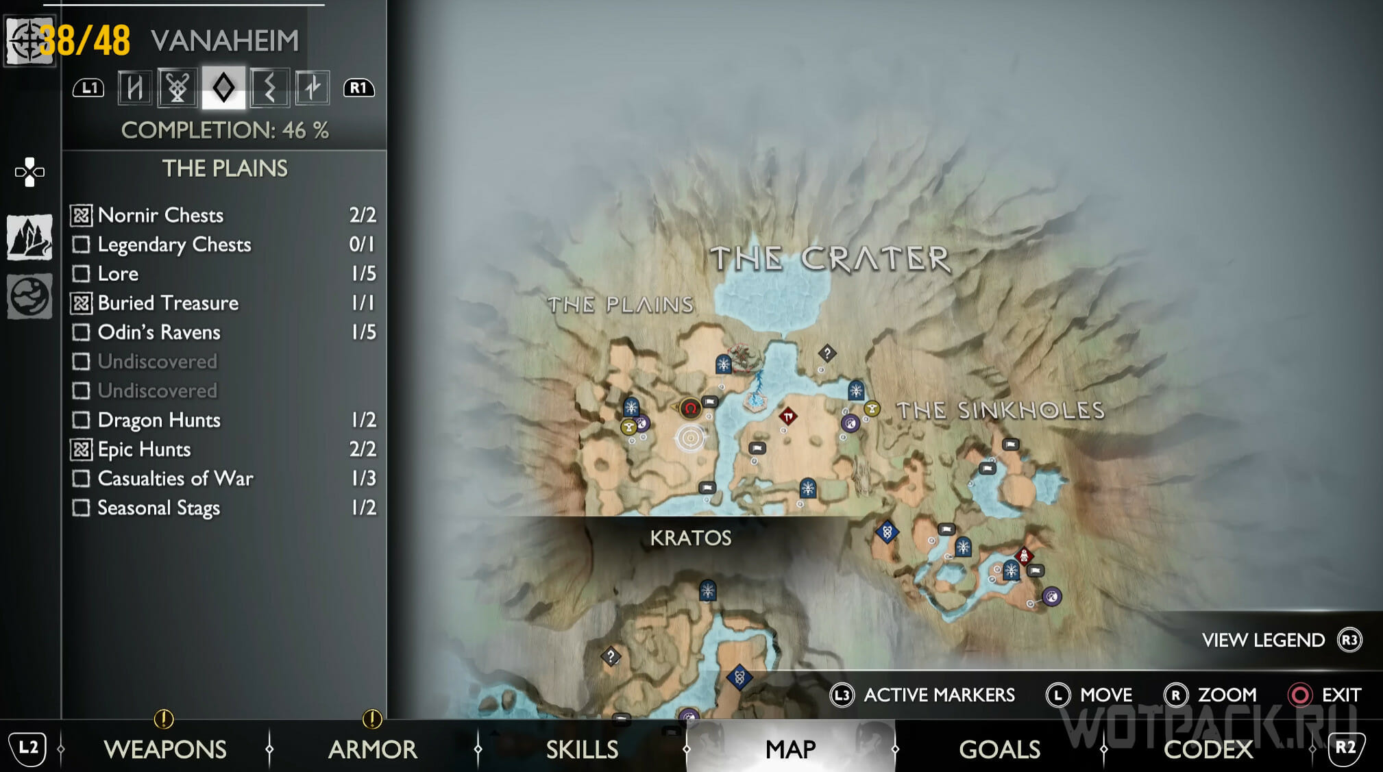 Найдите возвышенность в центре, через которую Кратос проходил по сюжету. Здесь же есть сундук Норн. Спрыгните слева и посмотрите за забор: там летает птица.