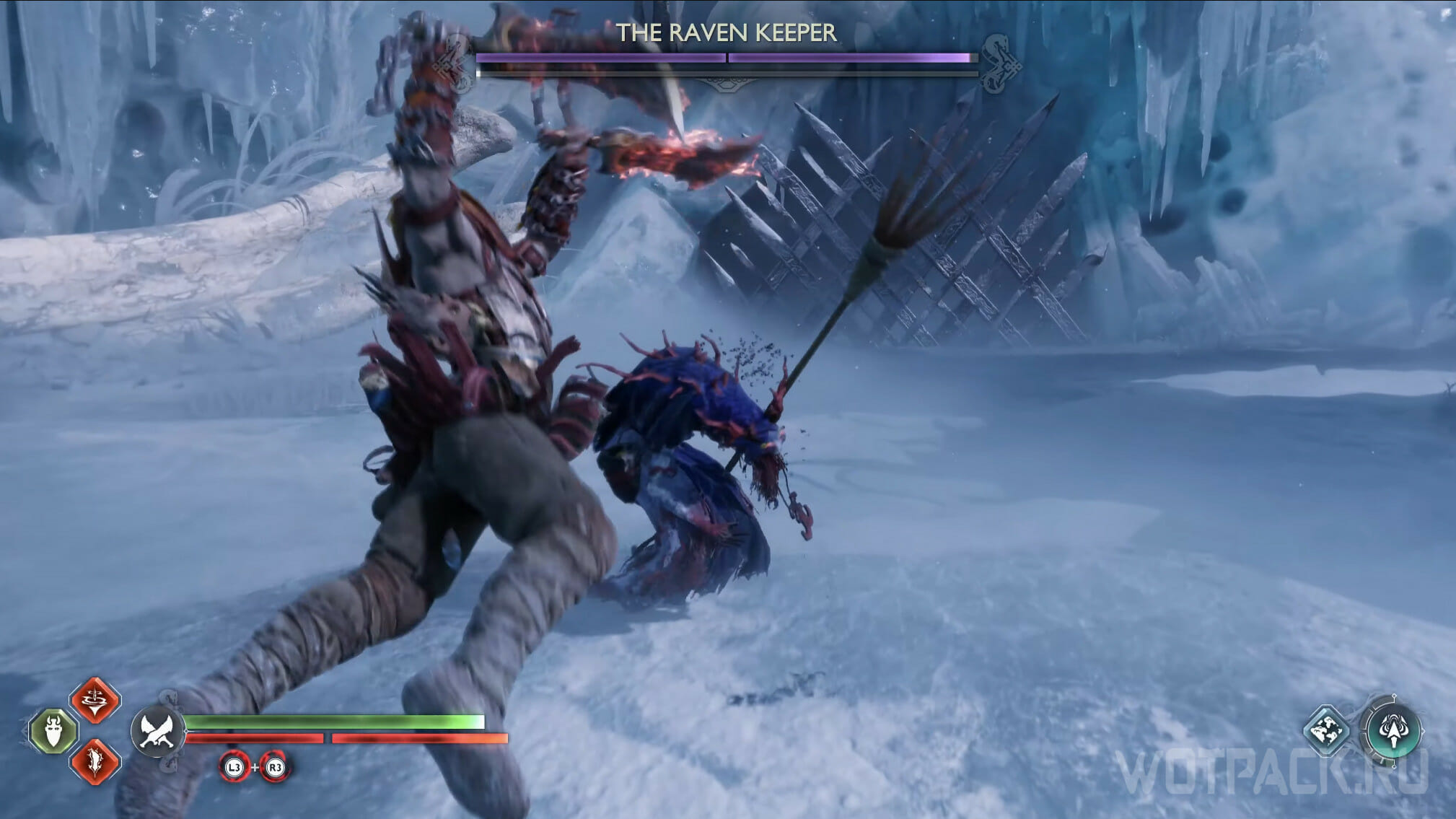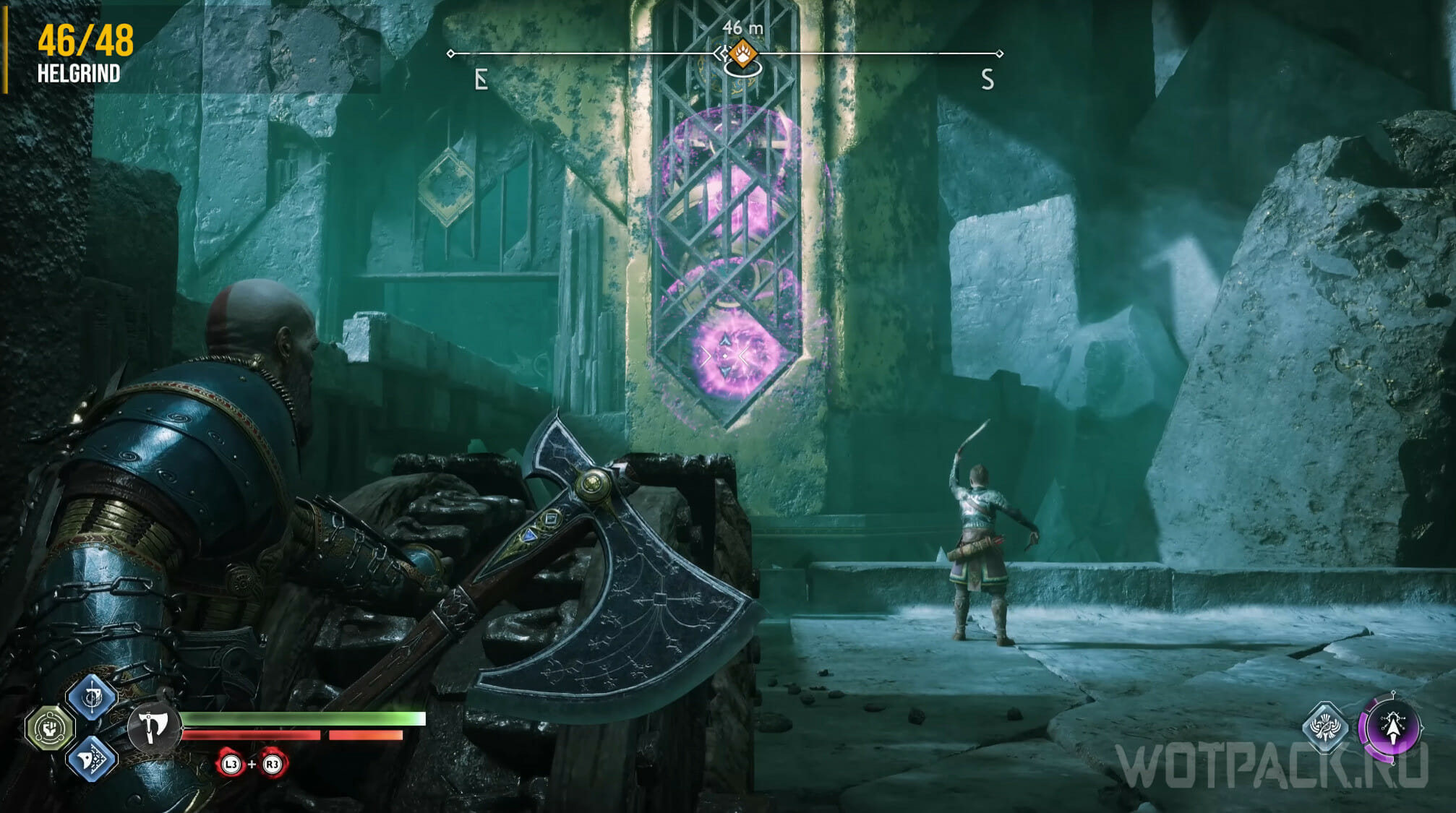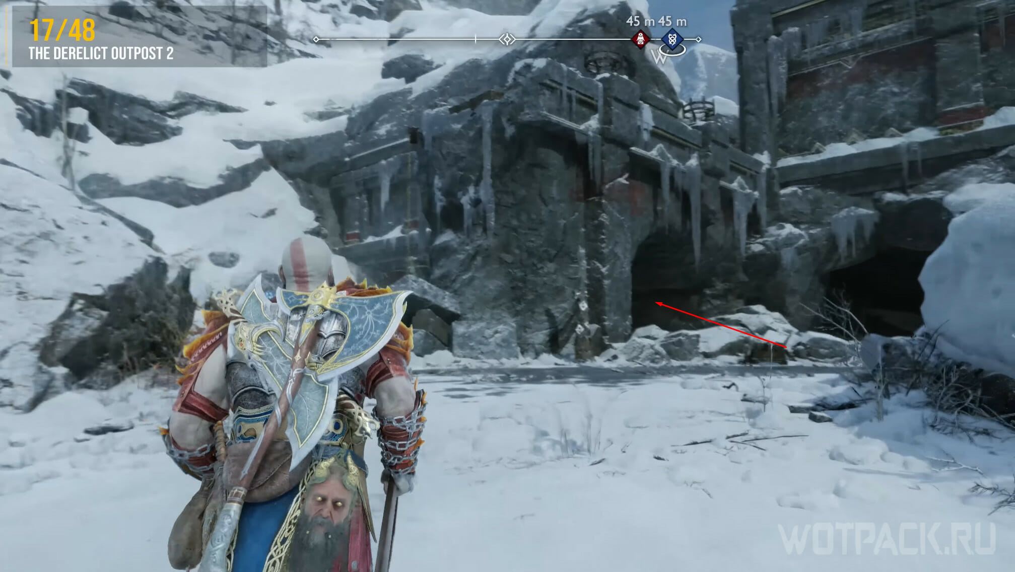 Как только откроете все шесть сундуков, появится Хранитель Воронов, которого потребуется убить для завершения просьбы «Глаза Одина». Бегите в сторону Мистических врат и сверните на арену, находящуюся справа.