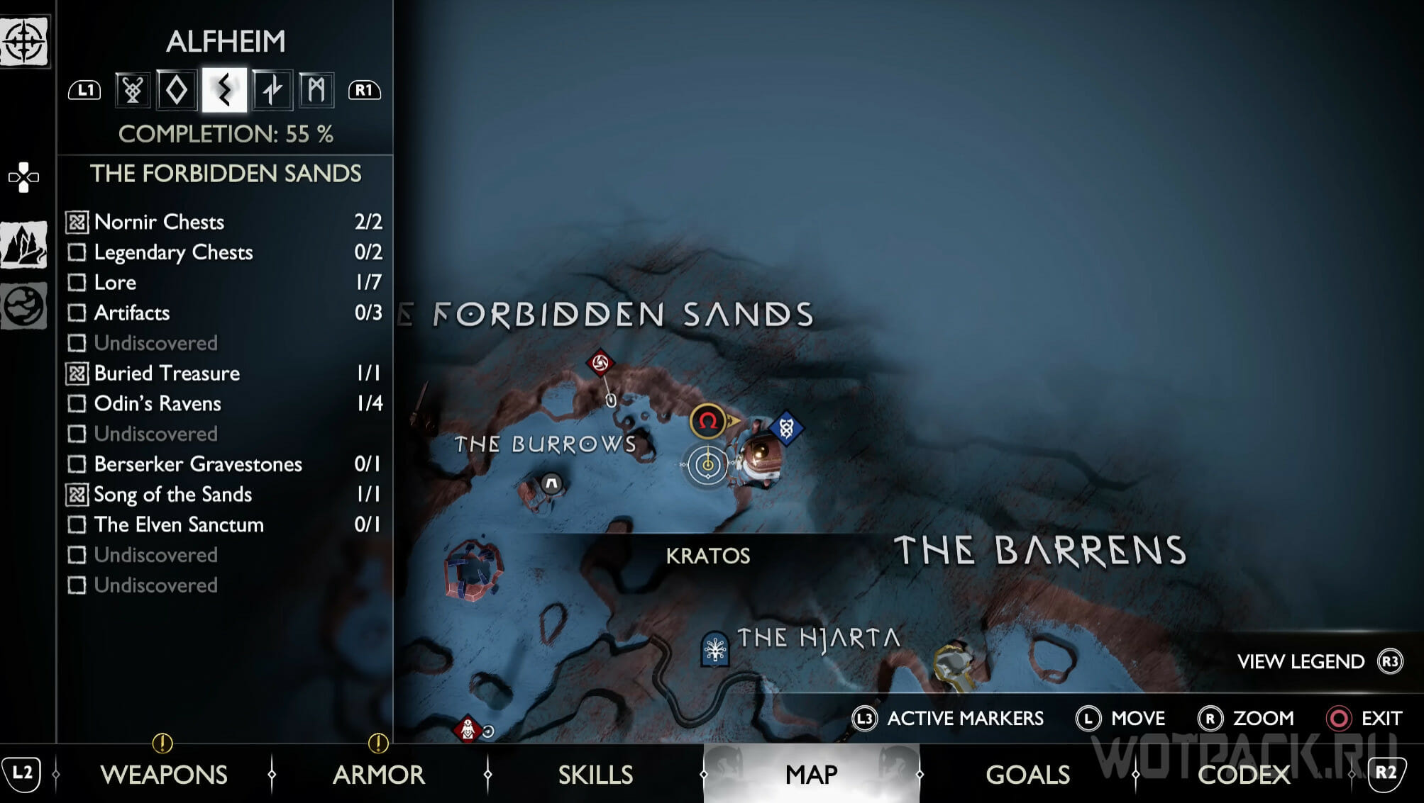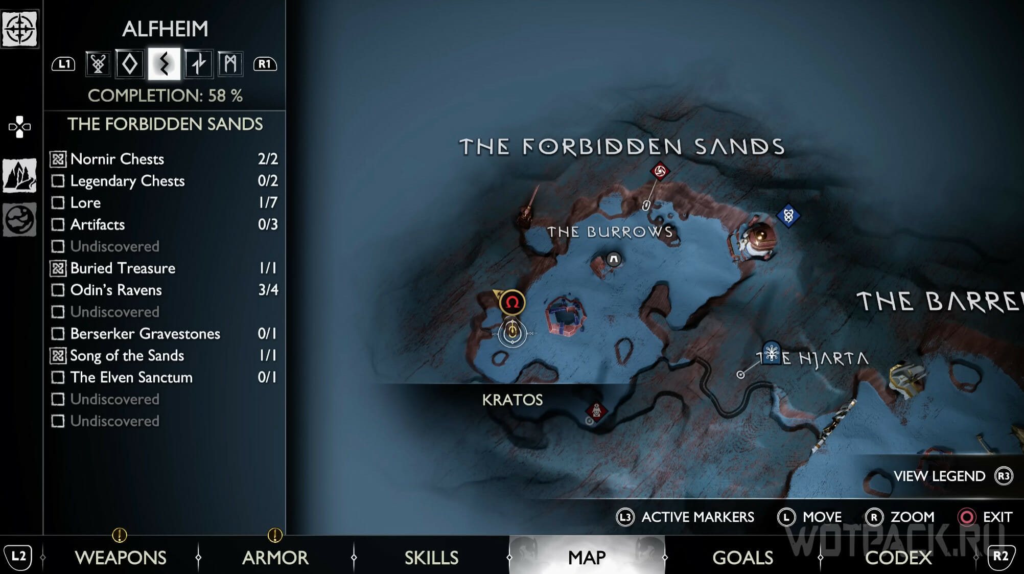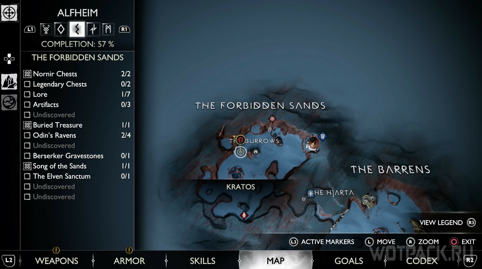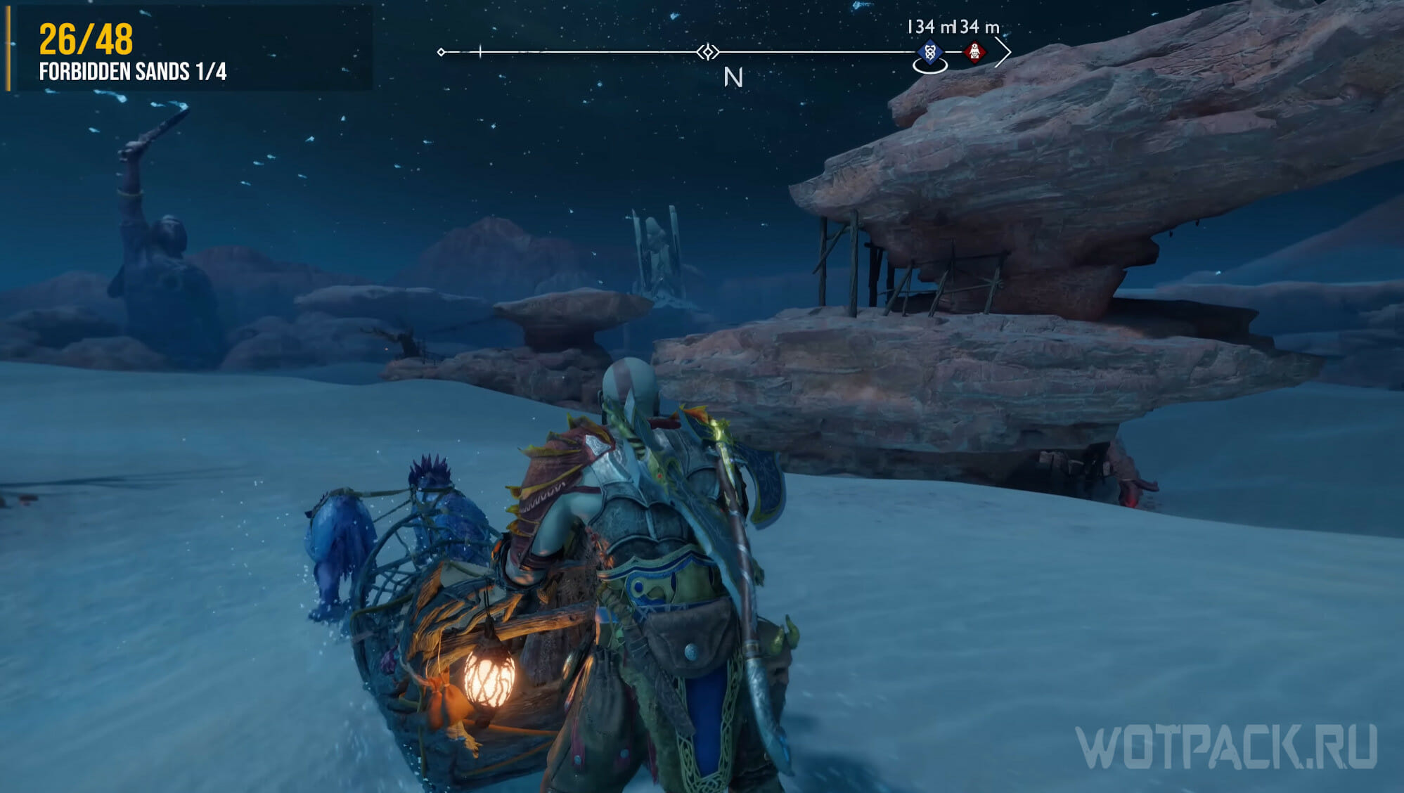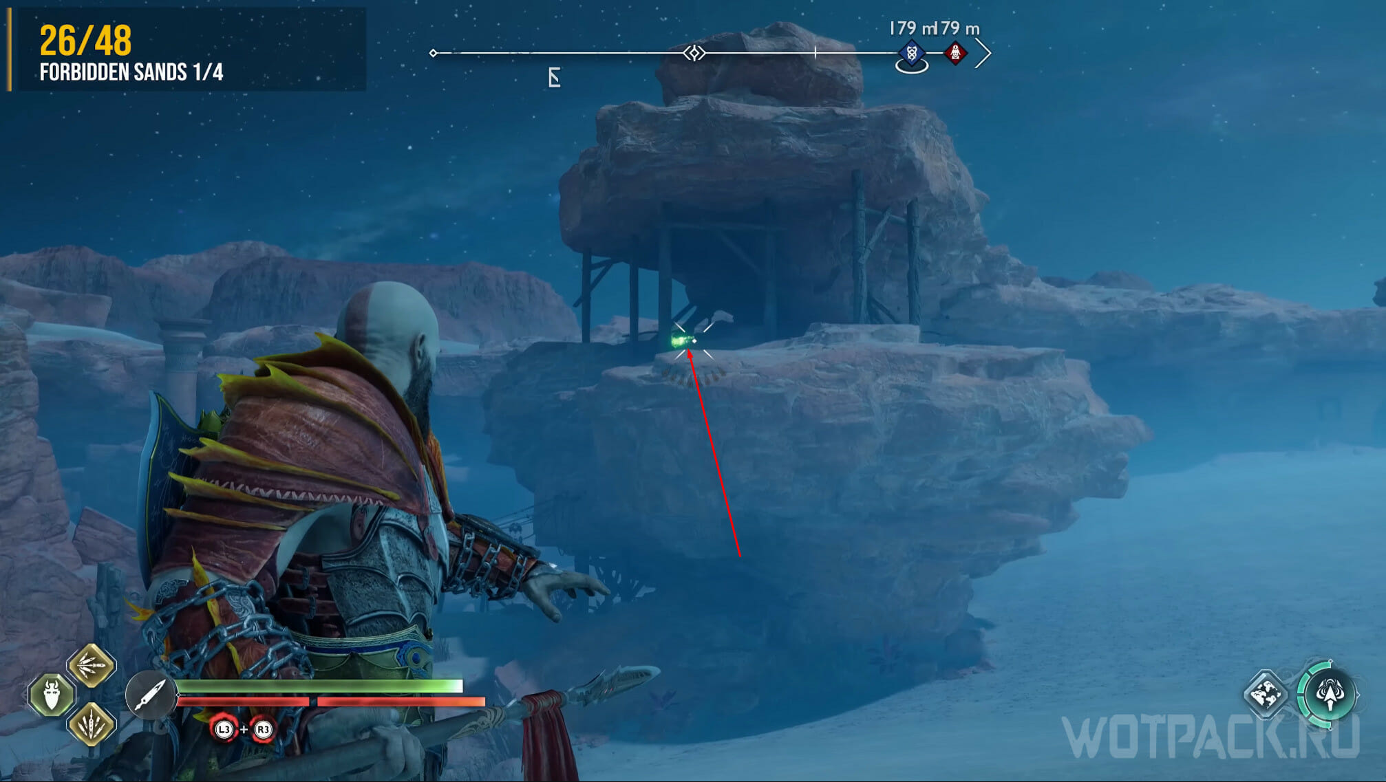Попасть в Запретные пески удастся только после главы «Расплата», в рамках которой Кратос получит умение, позволяющее пройти через тоннель. Цели квеста «Святилище эльфов» также приведут к этой точке. Когда попадете в нужную локацию, активируйте просьбу «Песня песков», которая начнется сразу же, а затем завершите задачу и очистите область от бури.