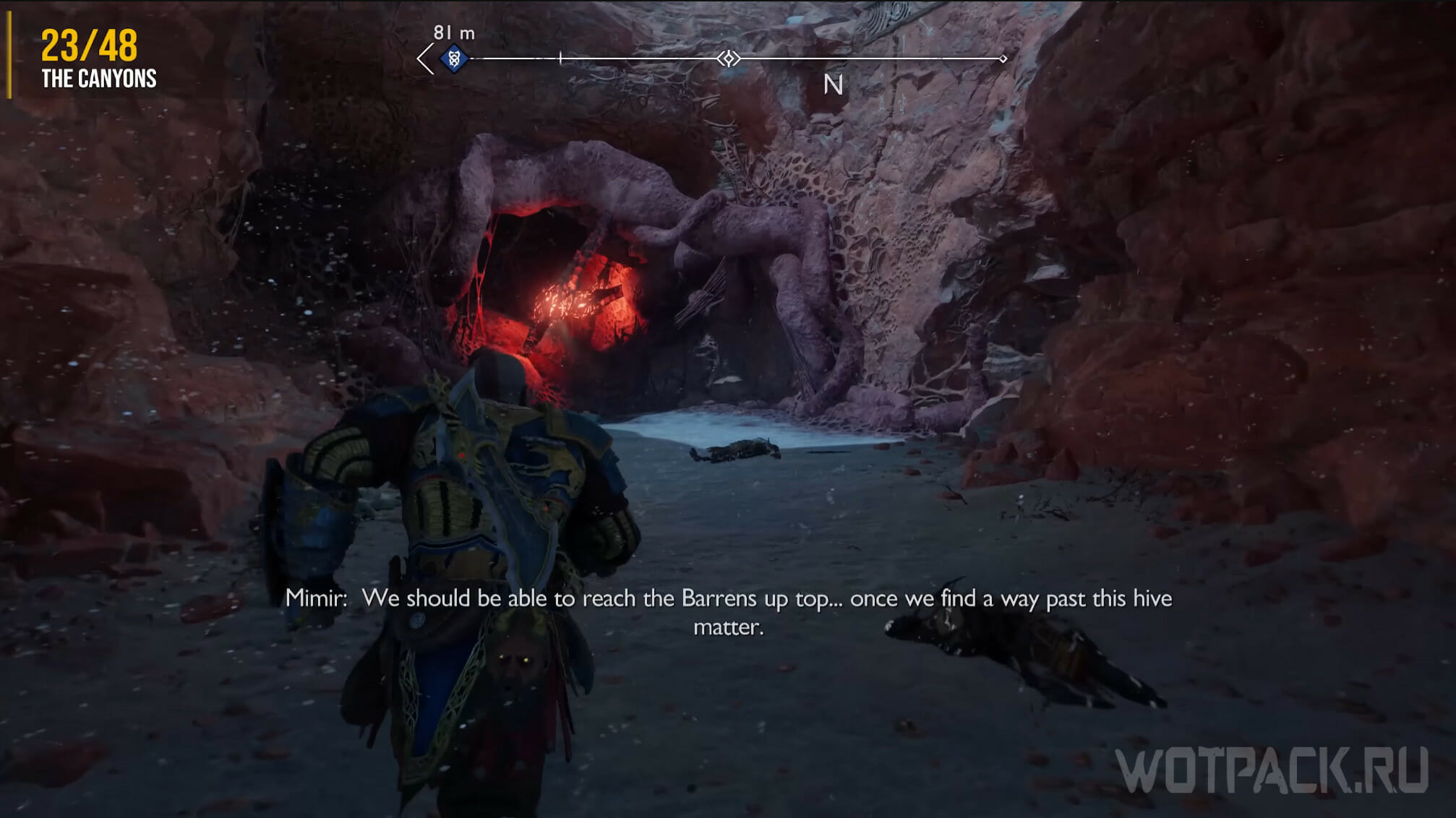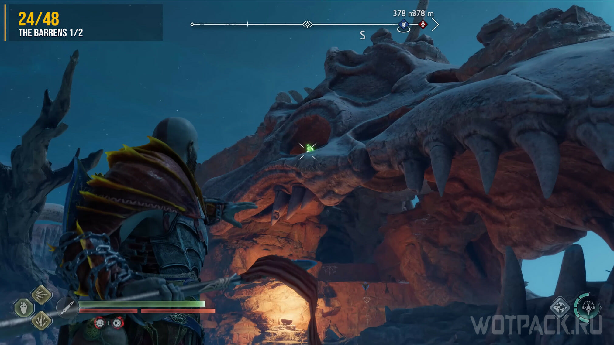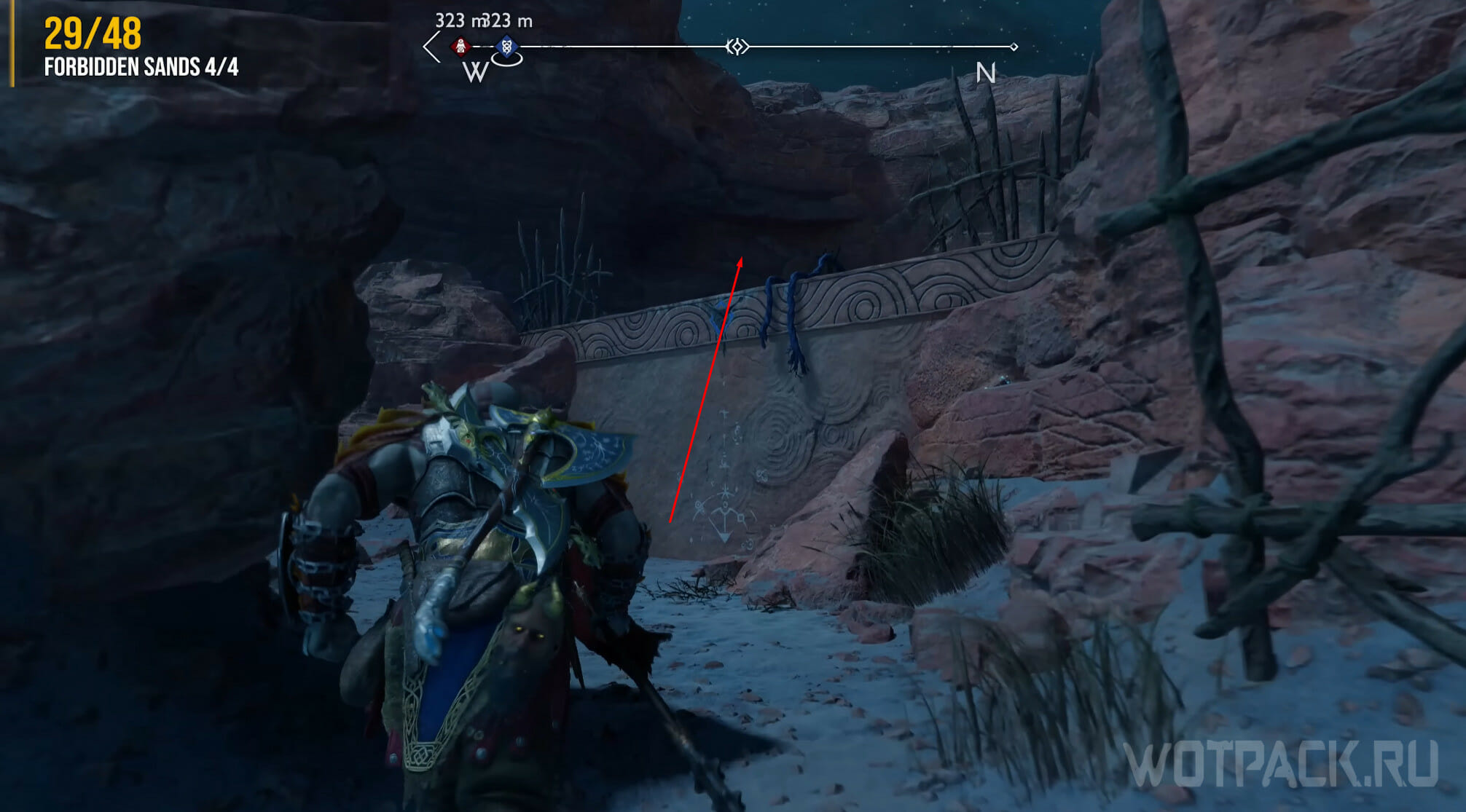 Снова направляйтесь к телепорту у алтаря на западе Равнин. Смените время суток на ночь, спрыгните с восточной стороны и бегите в ворота, подсвеченные факелами. Сверните налево, затем направо и еще раз направо, войдя в пещеру. Протиснитесь в узкий проход.