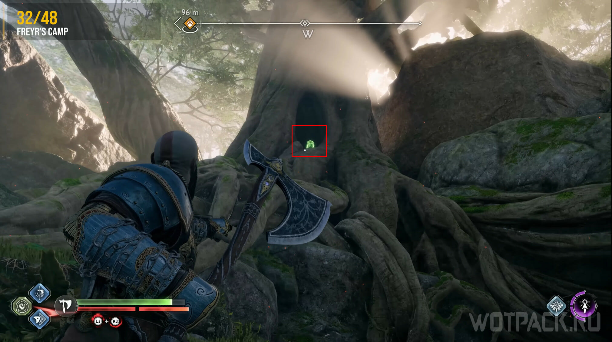 Когда завершите главу «Секрет Гроа», сможете пройти в Каньоны, находящиеся на северо-востоке от Стренда. Двигайтесь по проходу, пока не окажетесь у красной лозы Улея. Уничтожьте ее сердцевину топором и заберитесь на стену справа.