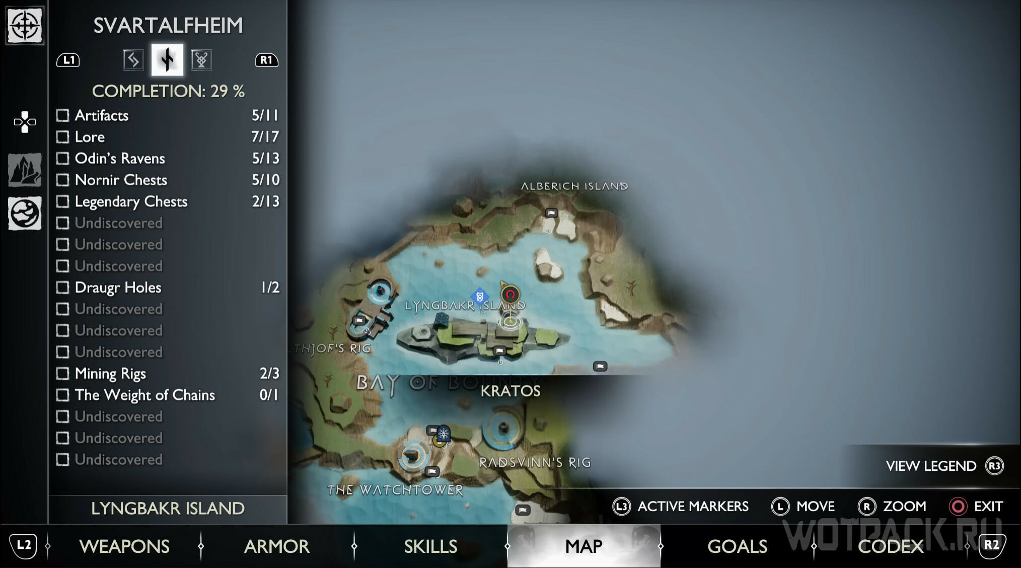 Остров Люнгбакра станет доступен во время выполнения второстепенного квеста «Тяжесть цепей». Кратос освободит несколько плавников и позволит острову оказаться на поверхности. Для начала пришвартуйтесь у места, где находится вторая цепь.