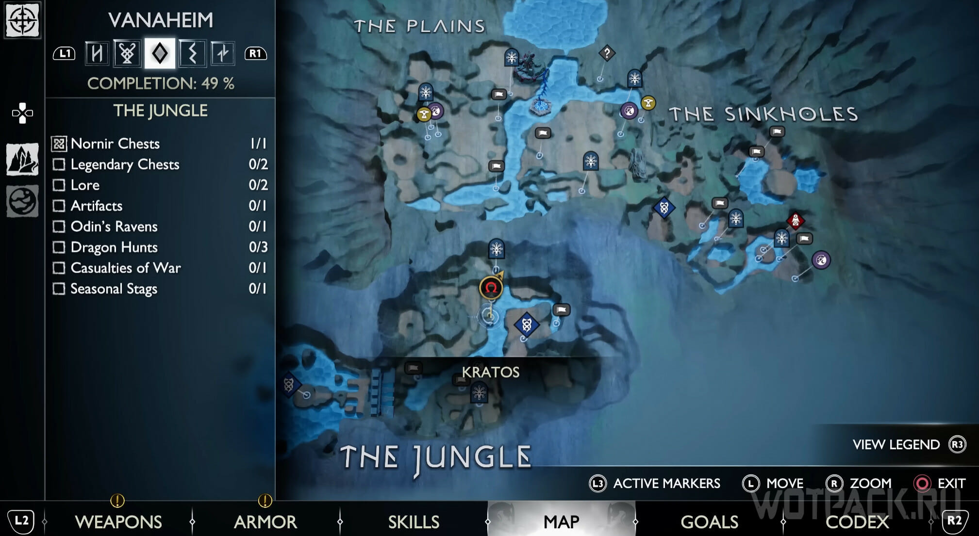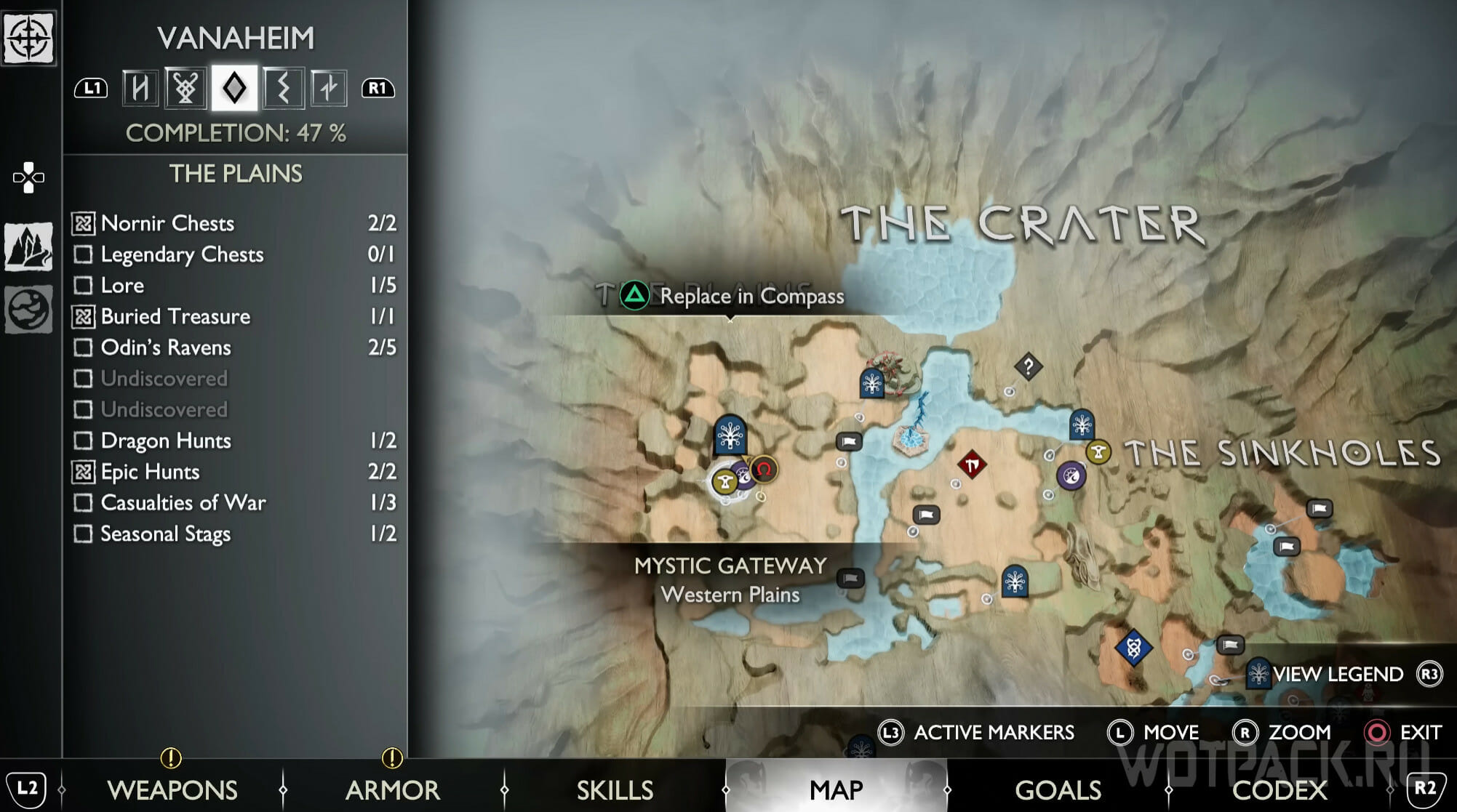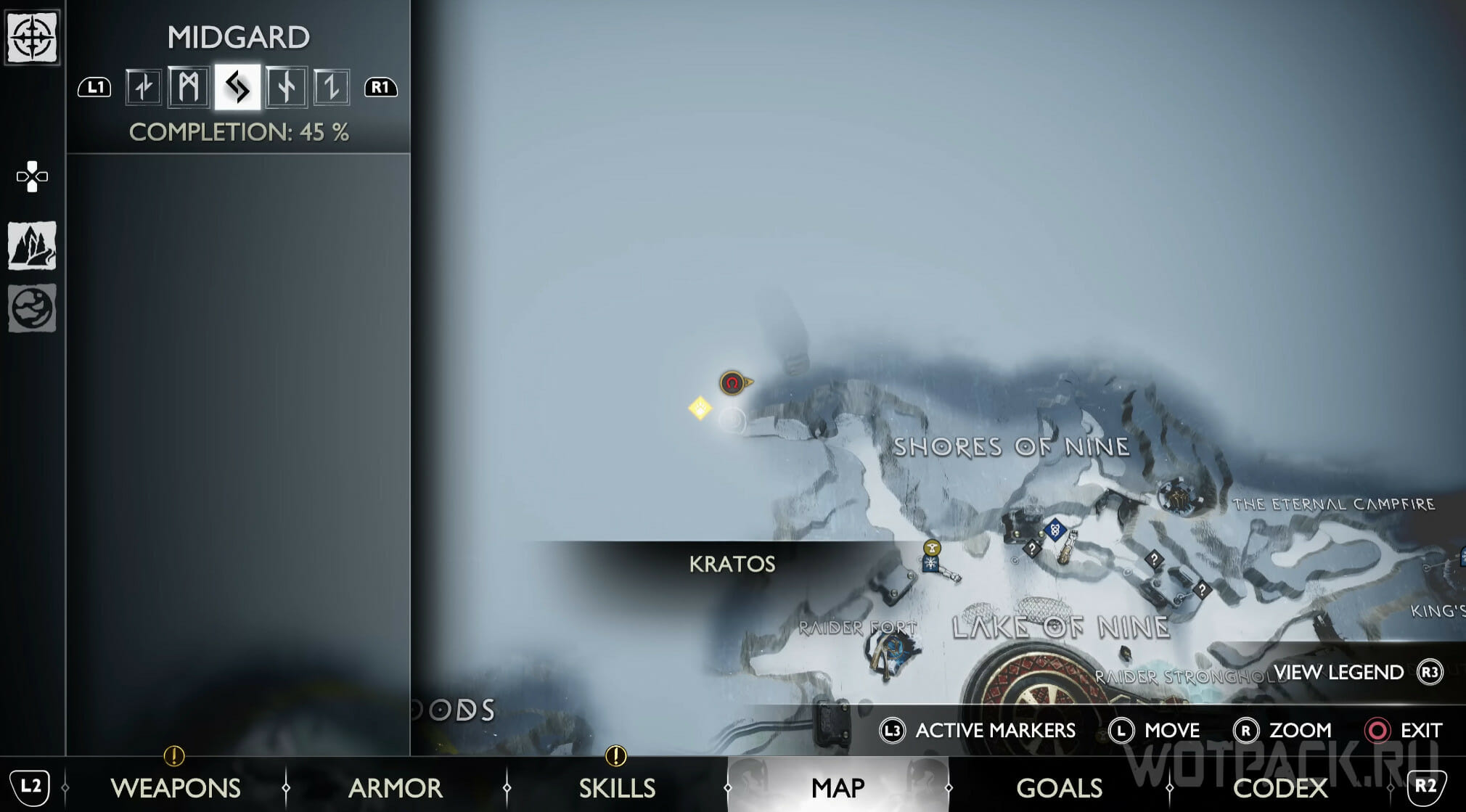 Переместитесь к Мистическим вратам, показанным на карте, они находятся на северо-востоке равнин. От них идите к алтарю и сверните налево. Спускаясь по лестнице, посмотрите прямо: слева от единственного дерева расположен шпион Одина.