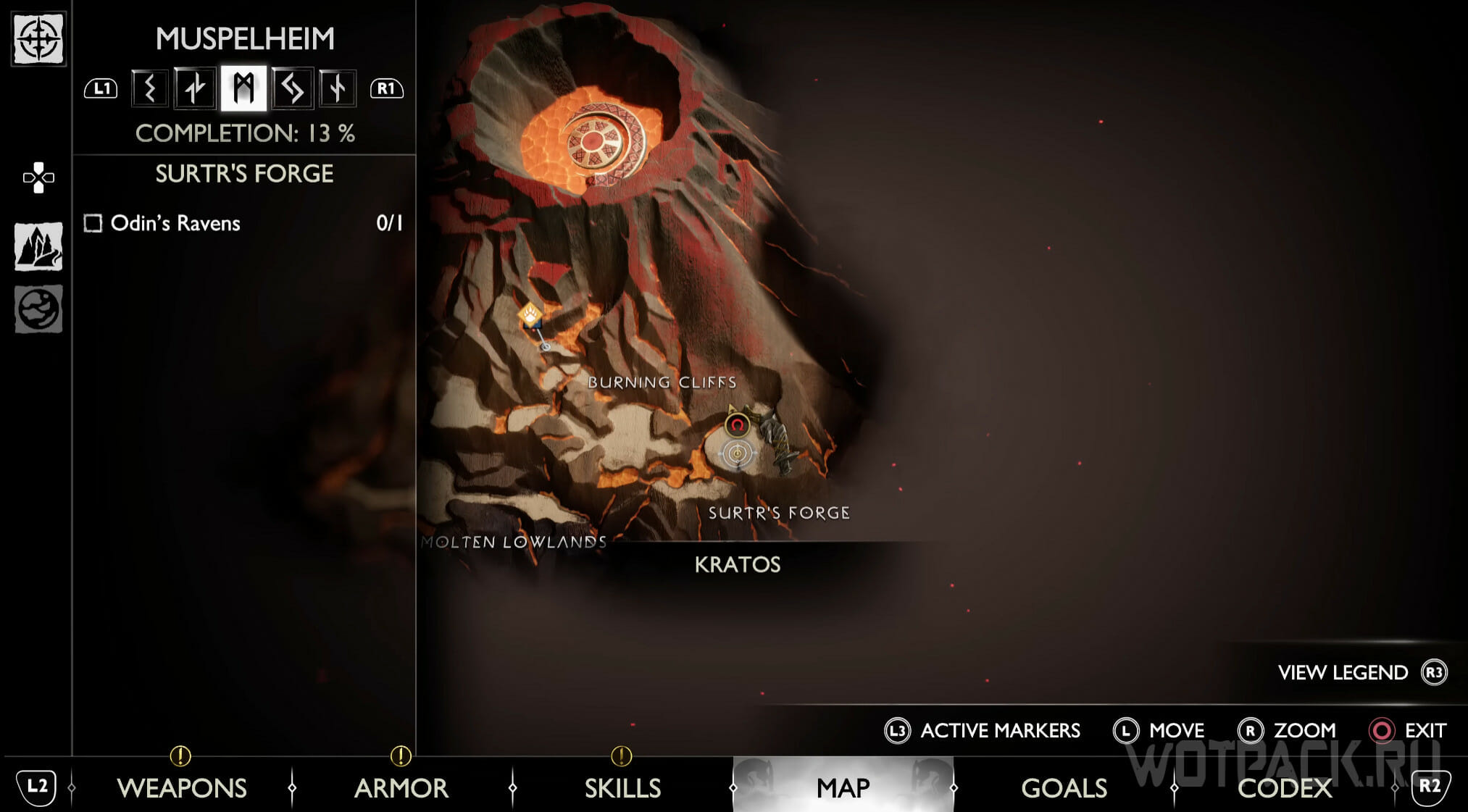 Первый ворон находится на Болотах Аурванга, в Свартальвхейме. Переместитесь к Мистическим вратам на острове, когда выйдете из них, сразу же обнаружите ворона на возвышенности. Уничтожьте его, и начнется задание Глаза Одина.