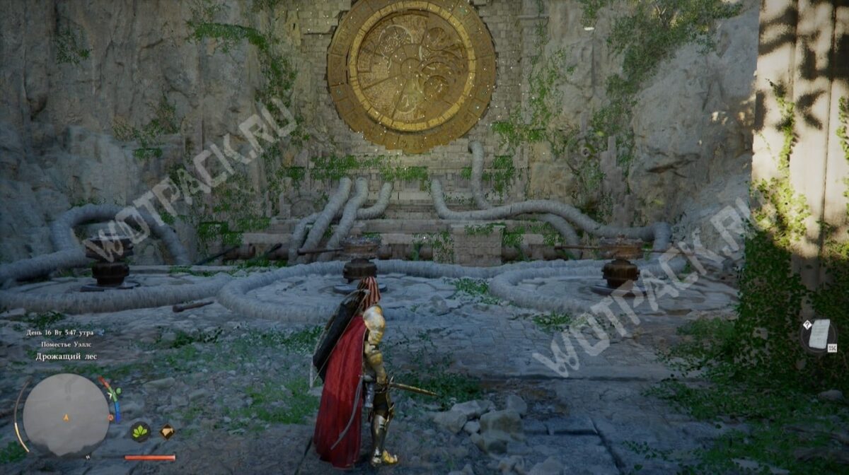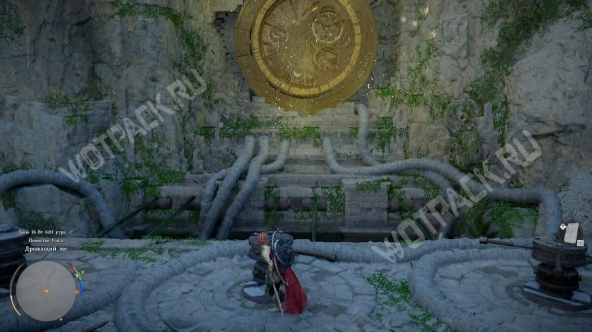 Исследуя локацию «Дрожащий лес», можно наткнуться на скрытую за горным массивом зону с золотой фреской и тремя деревянными механизмами в Crimson Desert. Эта загадка относится к серии испытаний «Лесная нить: Древние руины». Восстановите фреску, соединив символы звезды, затмения и луны, и правильно расположите золотую рамку.