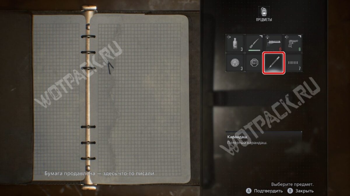 При повторном взаимодействии появится возможность выбрать предмет из инвентаря — примените карандаш.