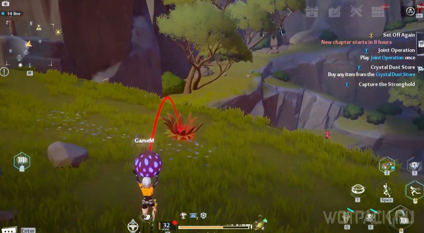 Горный цветок по своей механике схож с Поглотителем. Неподалеку нужно найти шар со светящимися отверстиями, после чего забросить внутрь растения. После этого появится награда. Стоит учитывать, что шарик не всегда спрятан поблизости, кроме того, он имеет физику и, например, падая с выступа, его можно уронить.