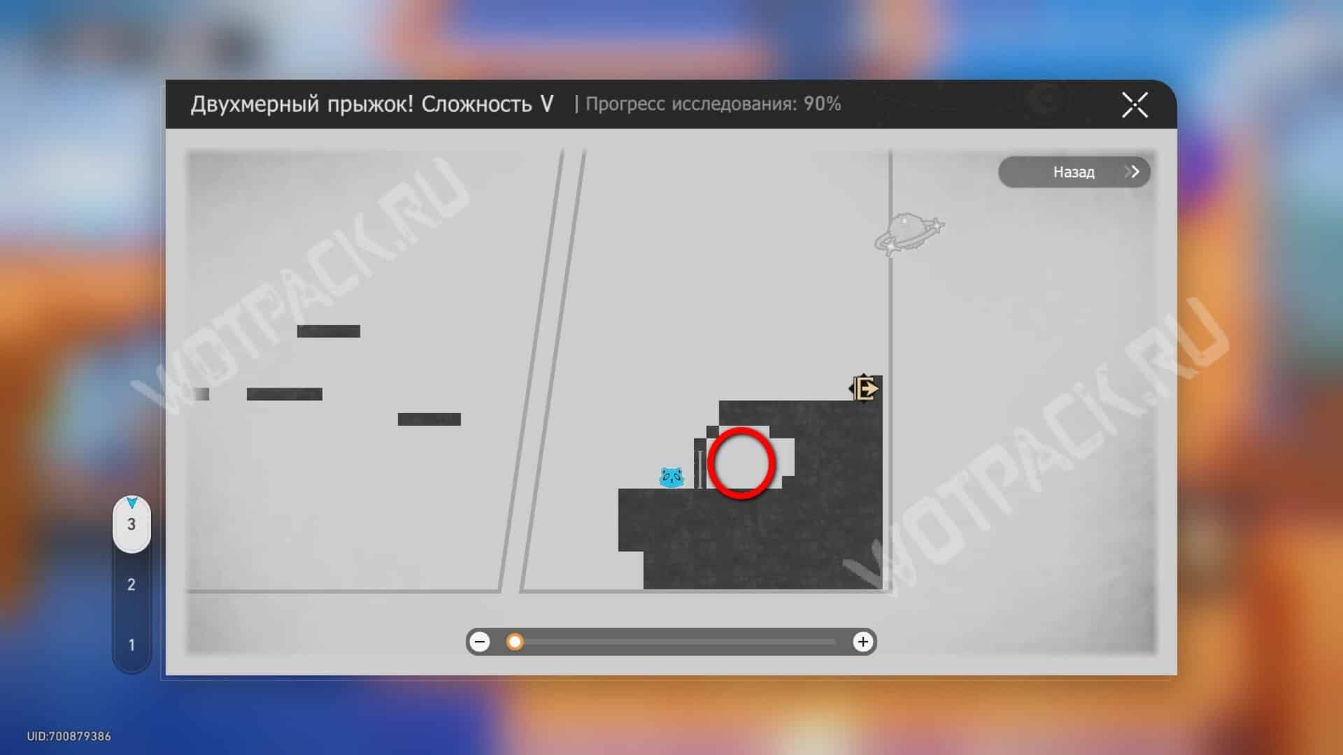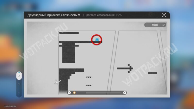 Внутри той же мини-игры, где предыдущие сокровища. На первом этапе минуйте первое место с кнопками и дойдите до второго. Запустите робота и встаньте на синюю платформу, которая поднимается вверх.