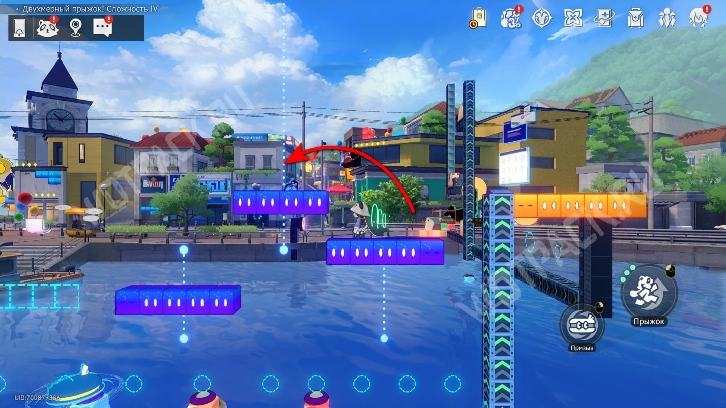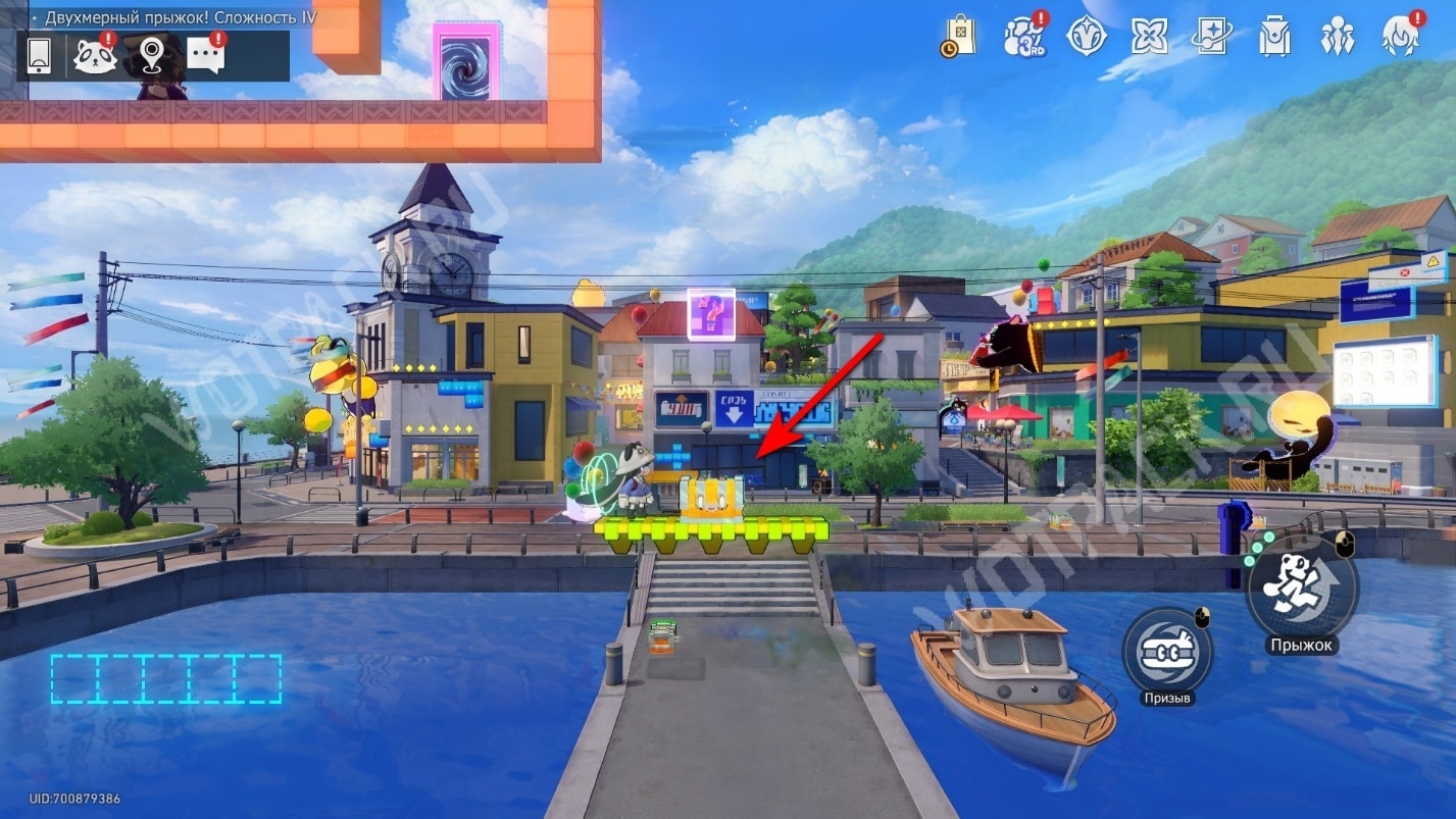 Вернитесь к мосту около станции и пройдите немного на юг, где находятся автоматы для продажи билетов. Позади них есть вход в Двухмерный прыжок.